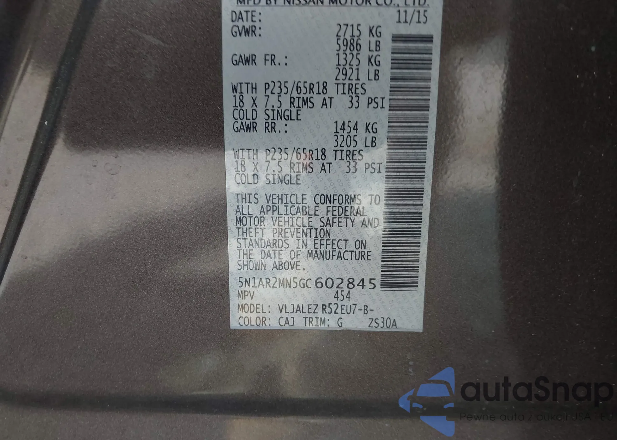 LOT: 42794507 VIN: 5N1AR2MN5GC602845