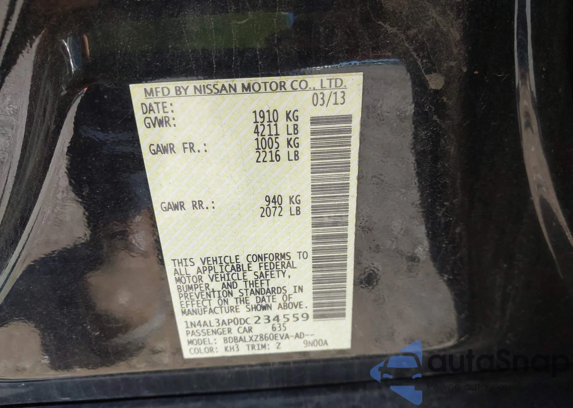 • VIN 1N4AL3AP0DC234559