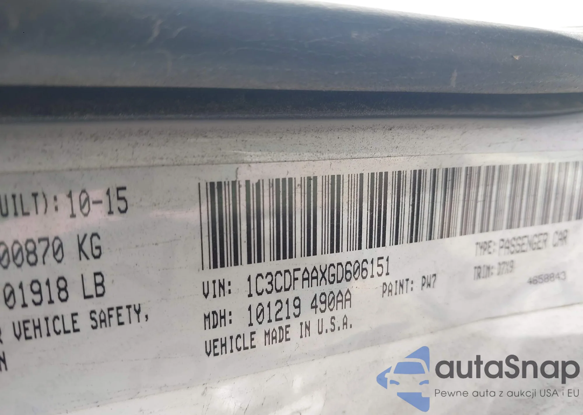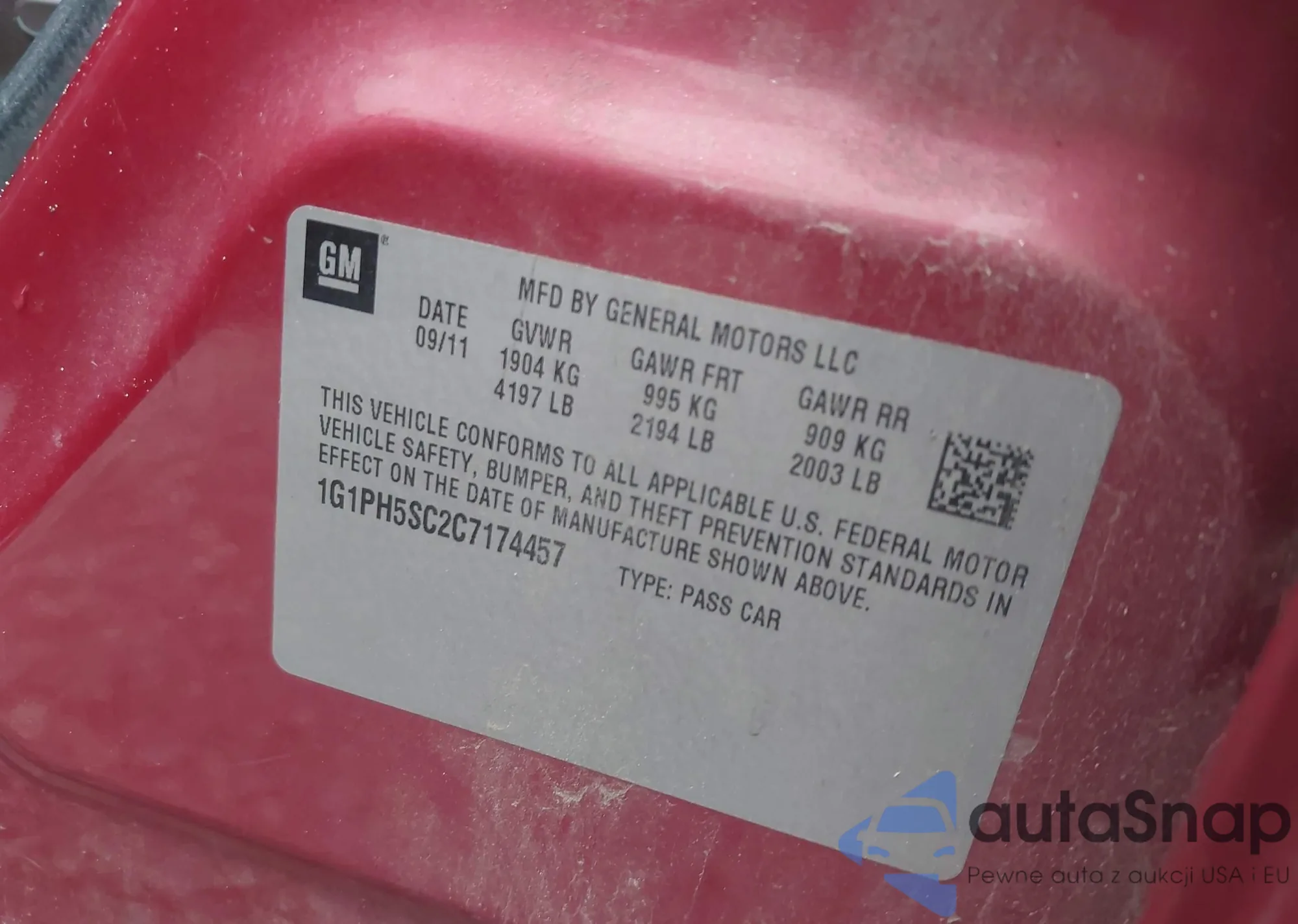 LOT: 43472219 VIN: 1G1PH5SC2C7174457