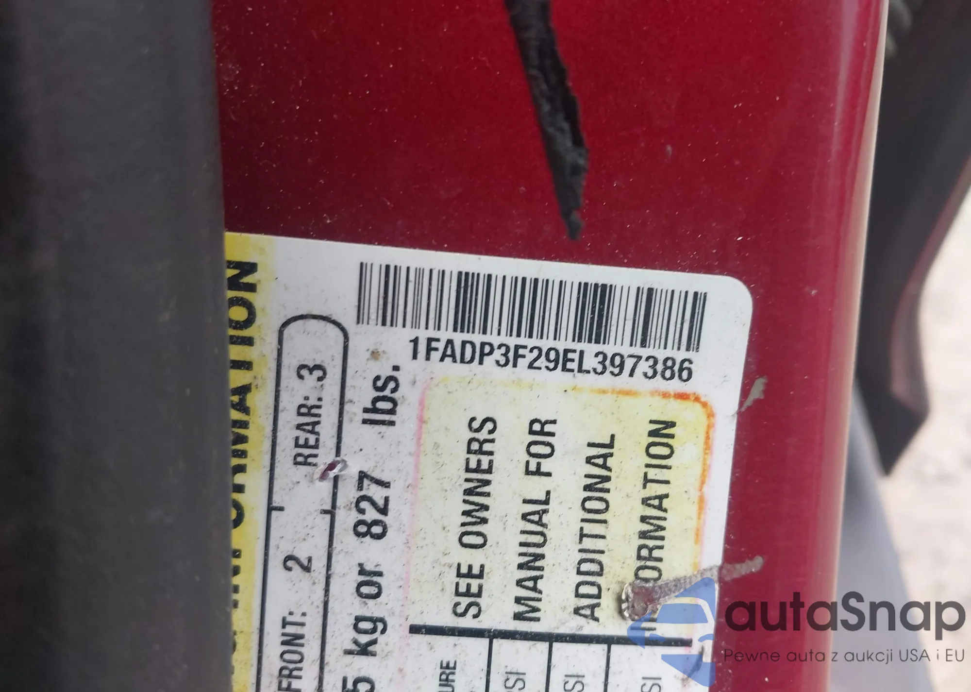 LOT: 43610763 VIN: 1FADP3F29EL397386