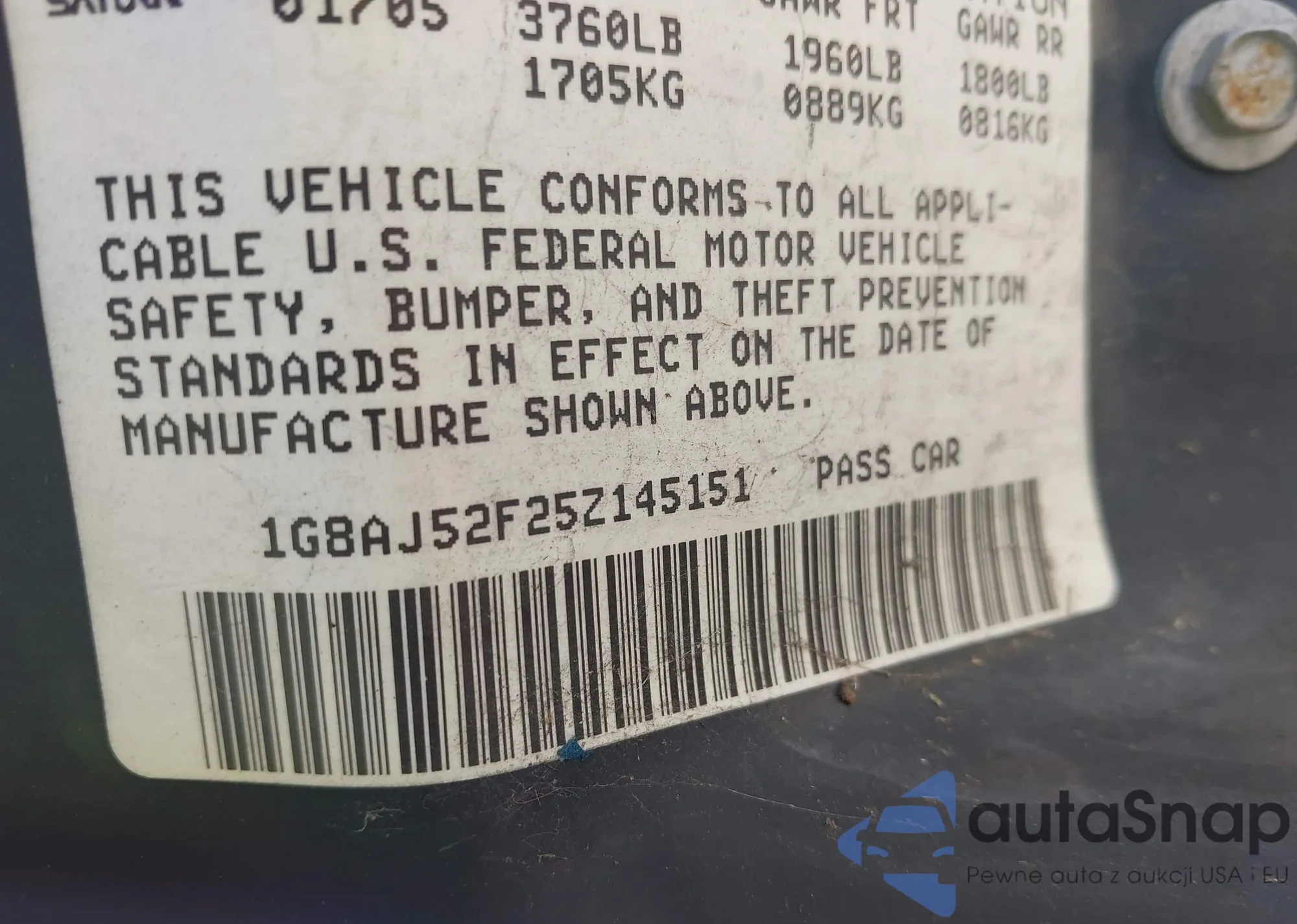 • VIN 1G8AJ52F25Z145151