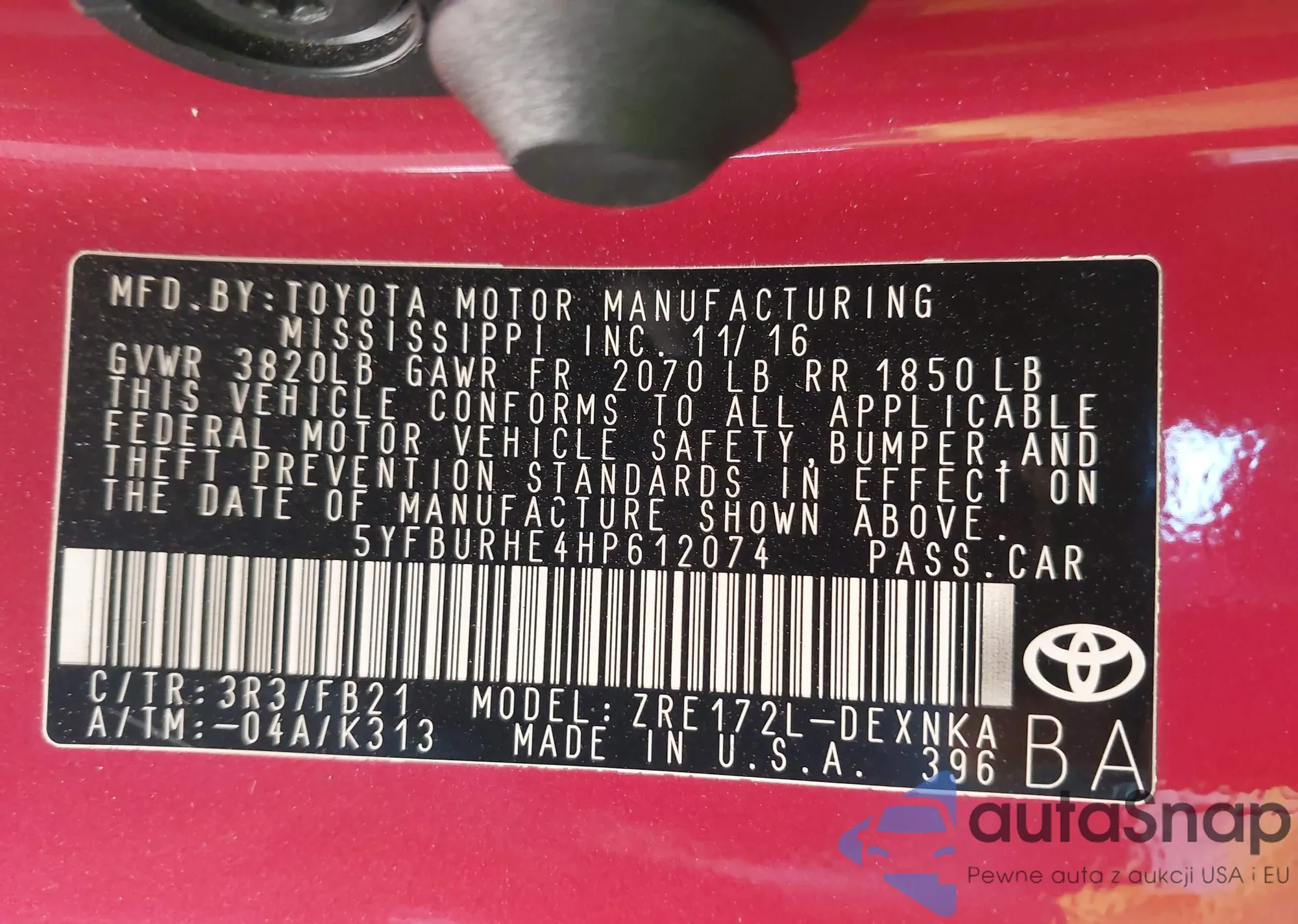 • VIN 5YFBURHE4HP612074