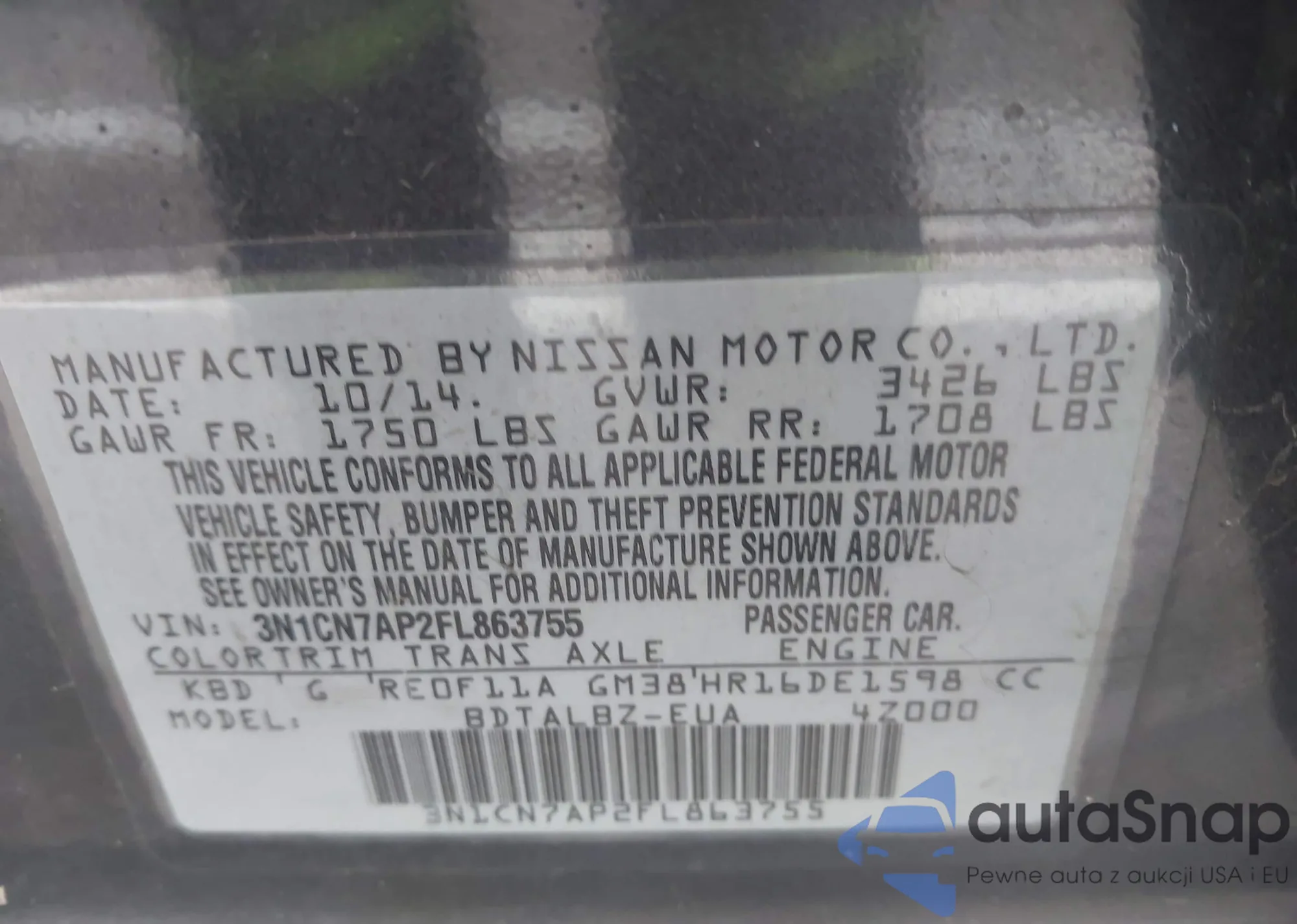 • VIN 3N1CN7AP2FL863755