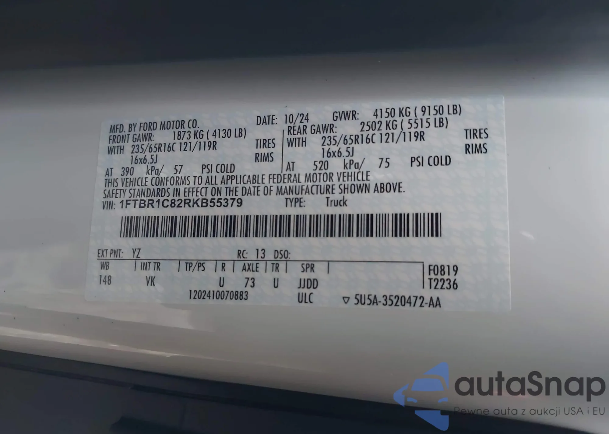 LOT: 43710303 VIN: 1FTBR1C82RKB55379