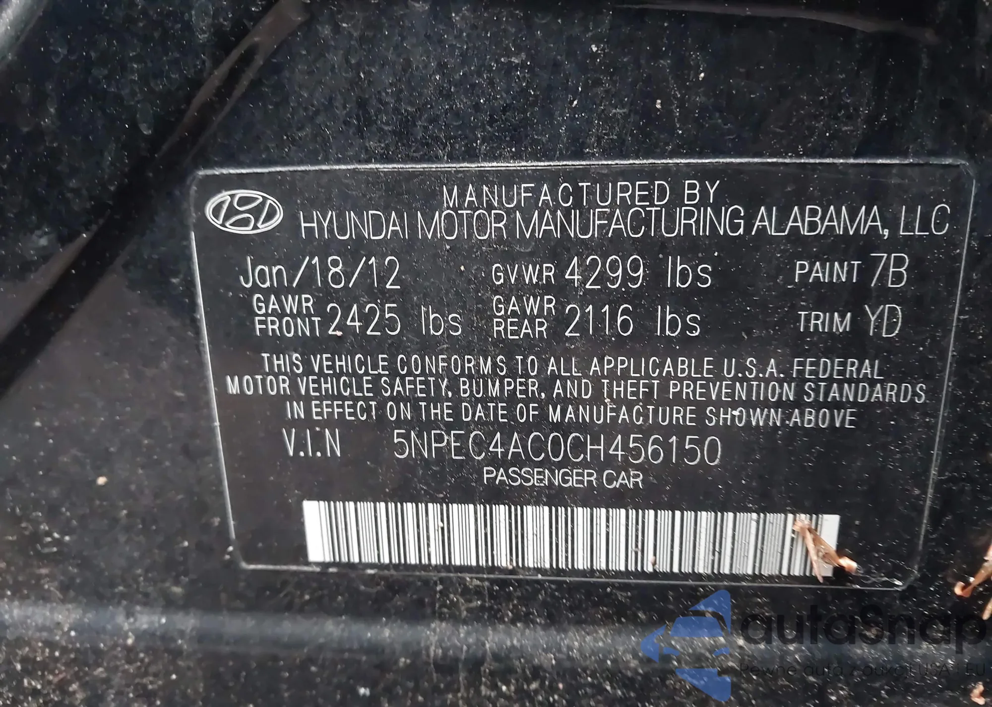 • VIN 5NPEC4AC0CH456150