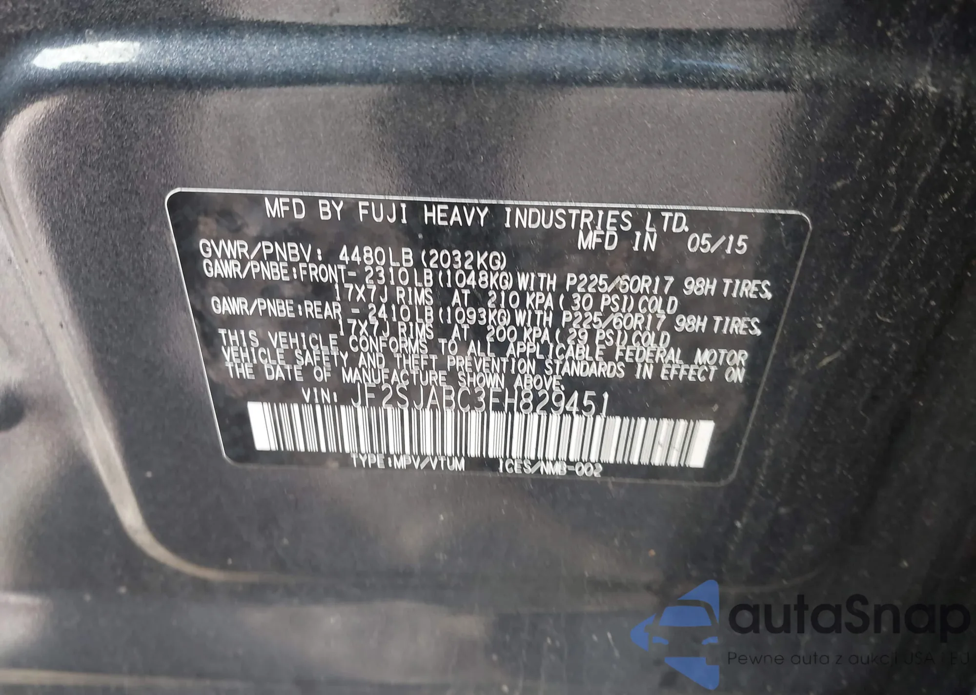 • VIN JF2SJABC3FH829451