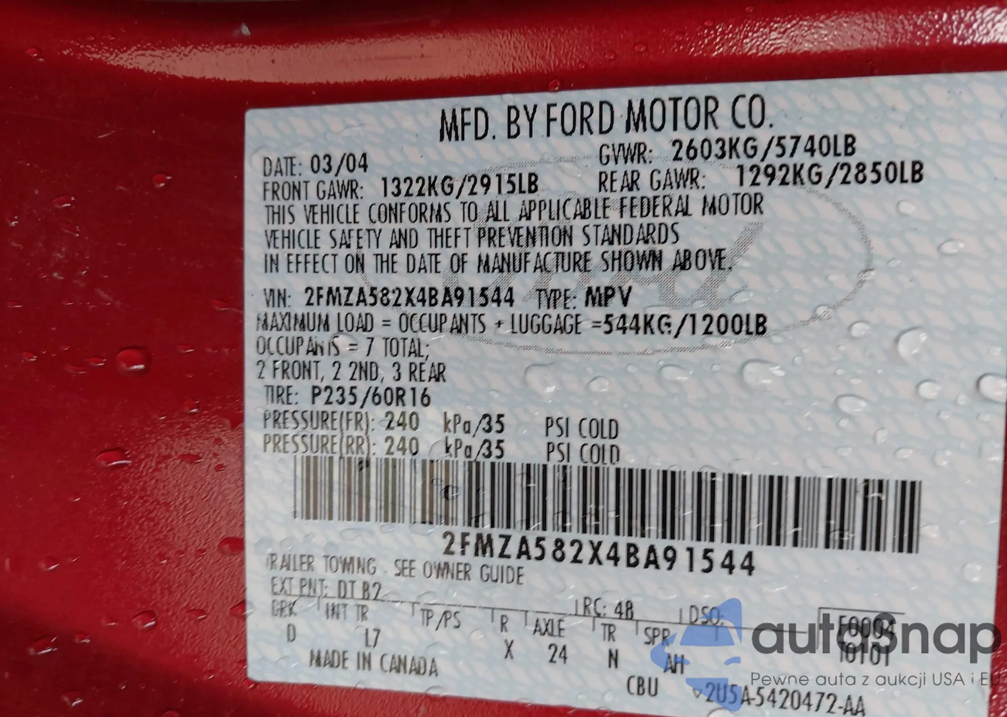 • VIN 2FMZA582X4BA91544