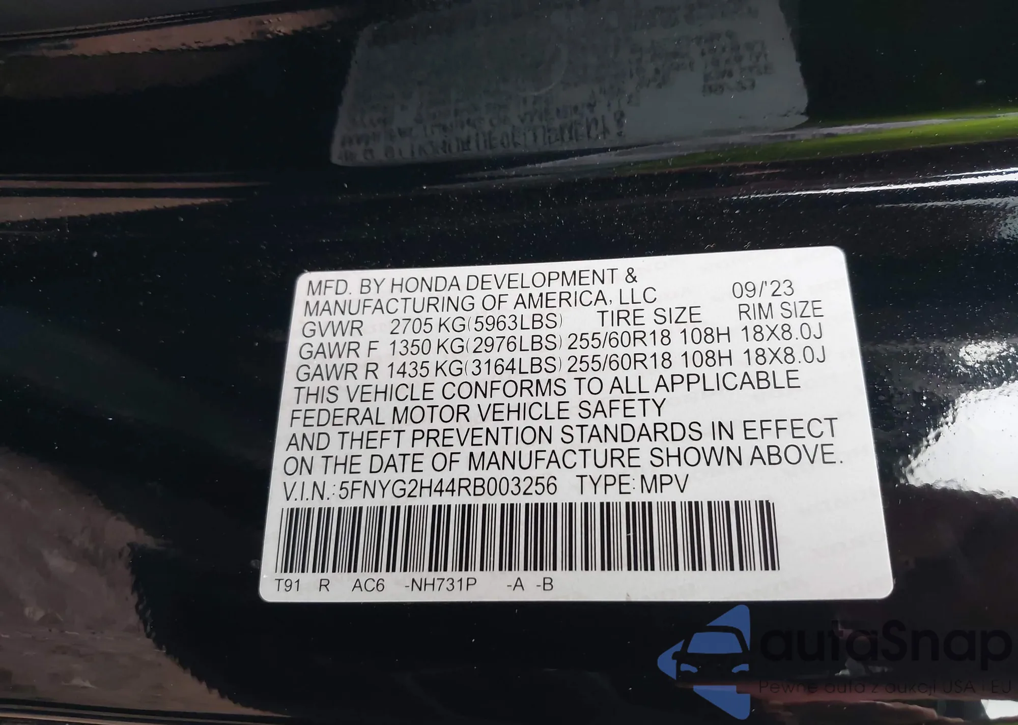 • VIN 5FNYG2H44RB003256