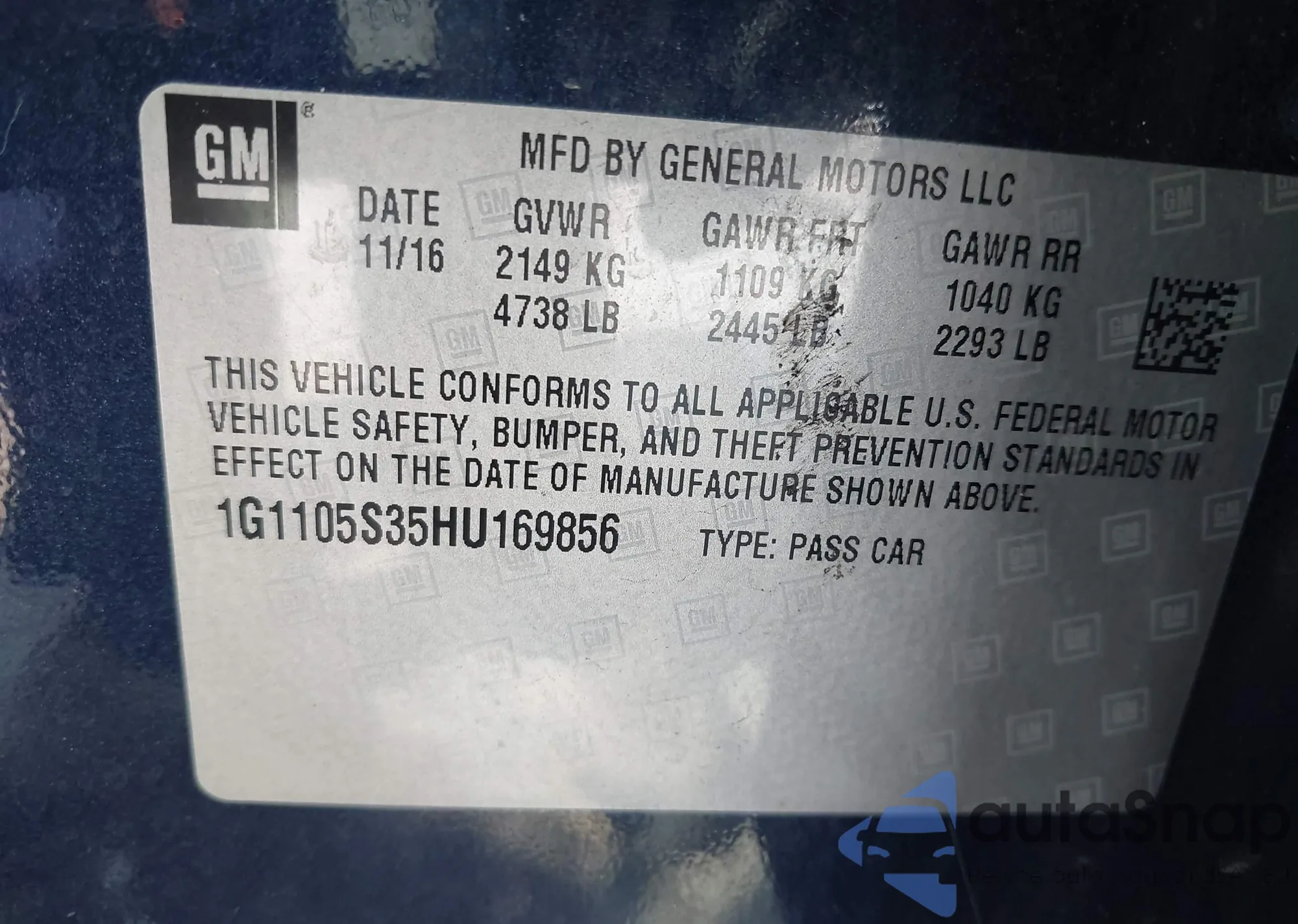 • VIN 2GNAXKEV6M6162235