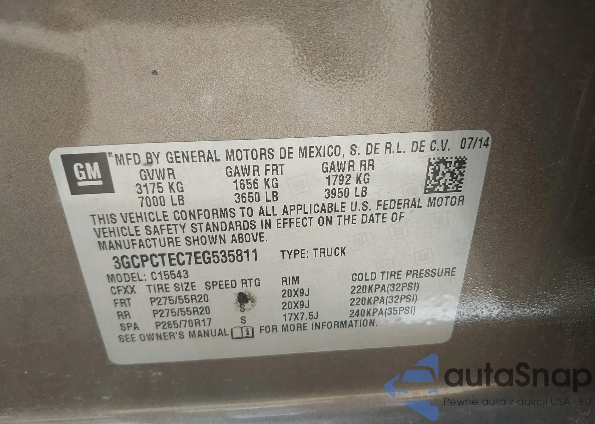 • VIN 3GYFNAE32CS505954