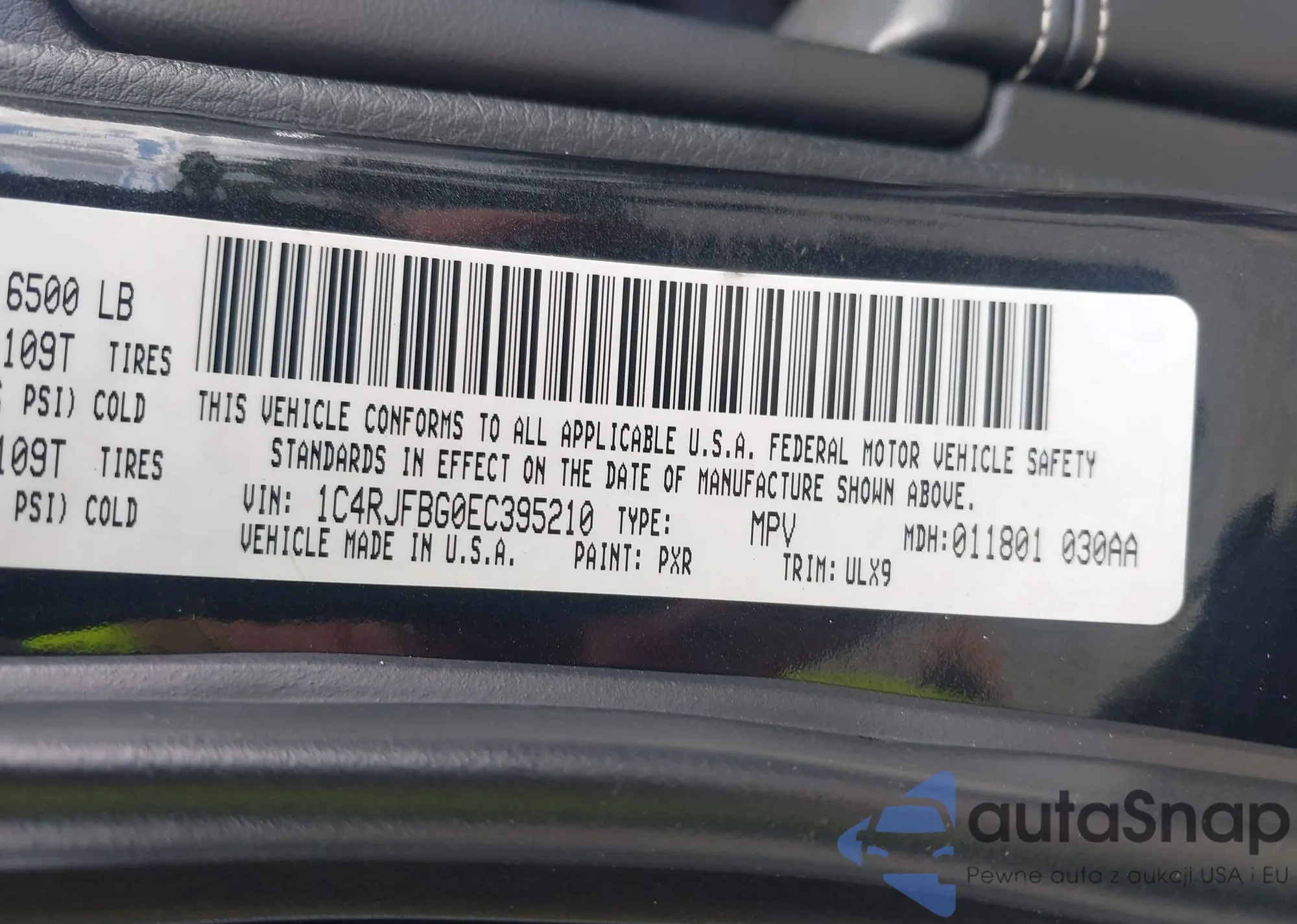 • VIN 1C4RJFBG0EC395210