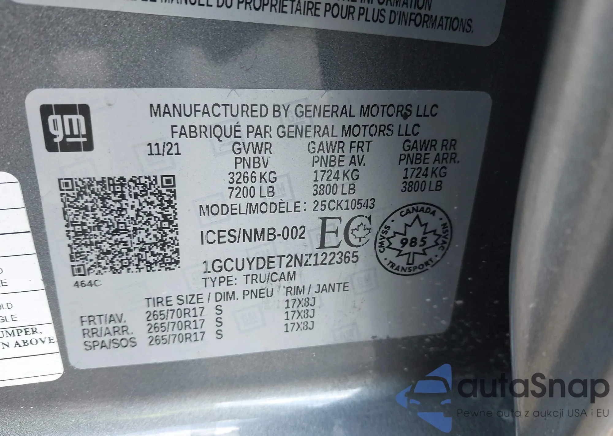 LOT: 43510929 VIN: 1GCUYDET2NZ122365