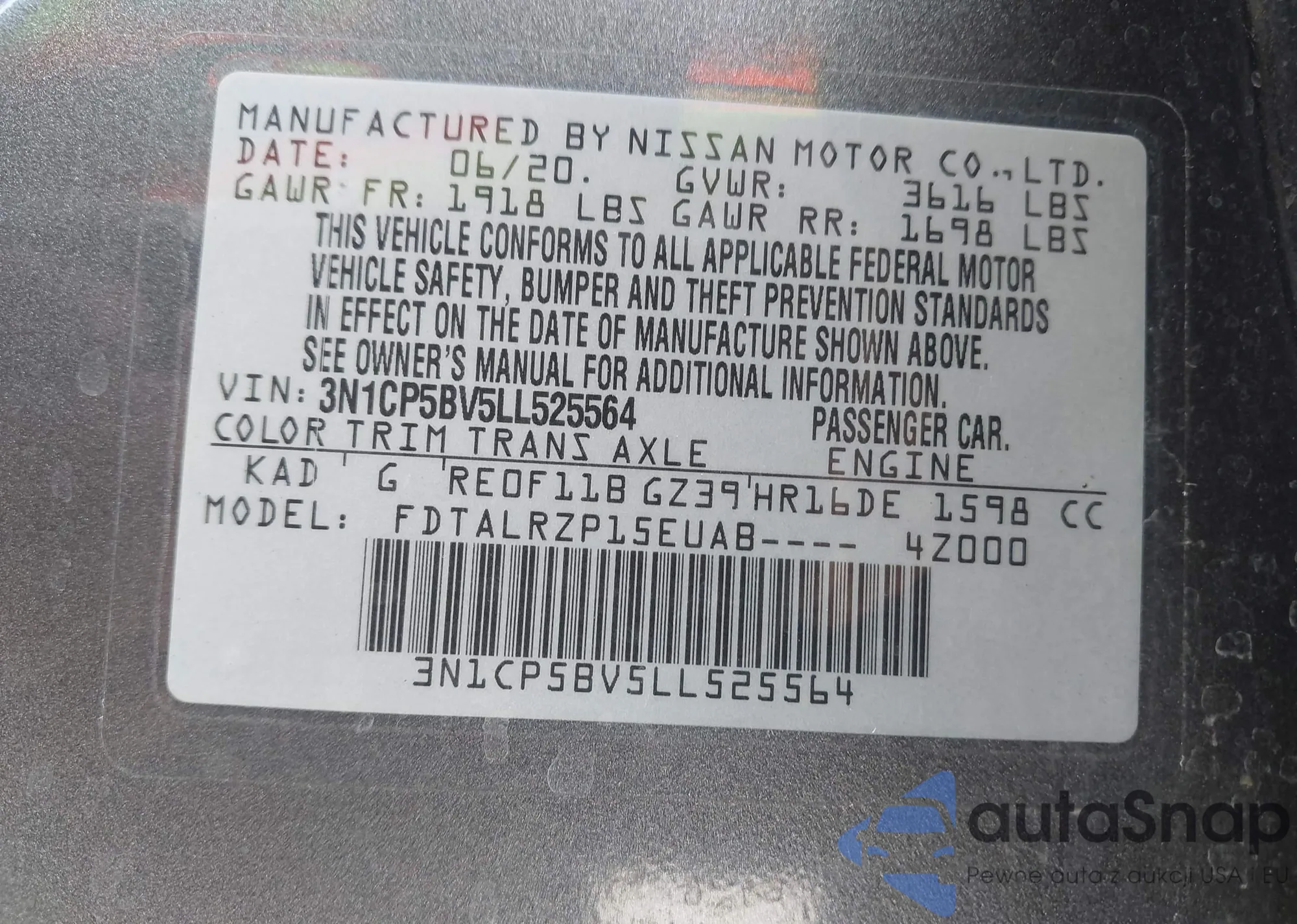 • VIN WAUB4CF51JA107908