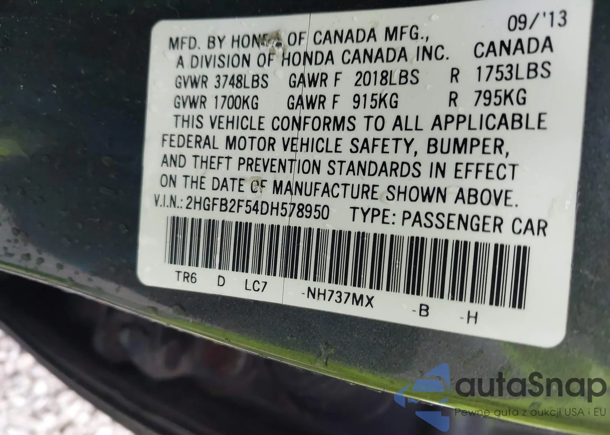 • VIN 5FNRL6H56JB090386