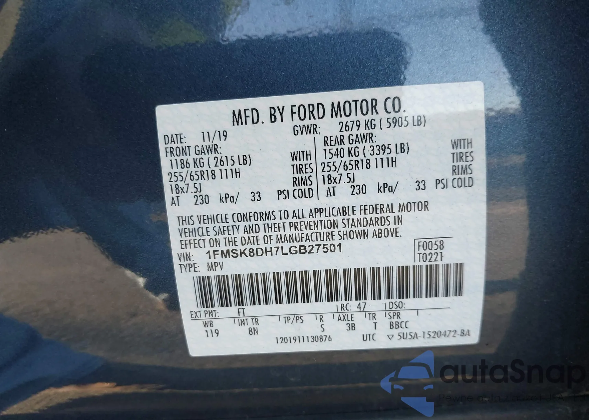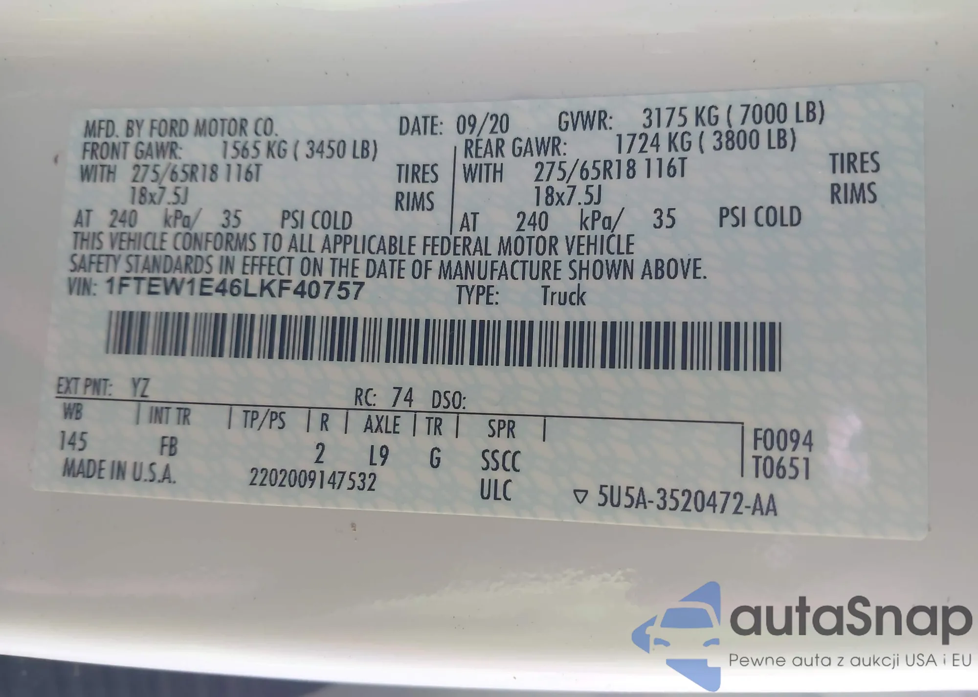 • VIN 4T1BF1FKXFU910953
