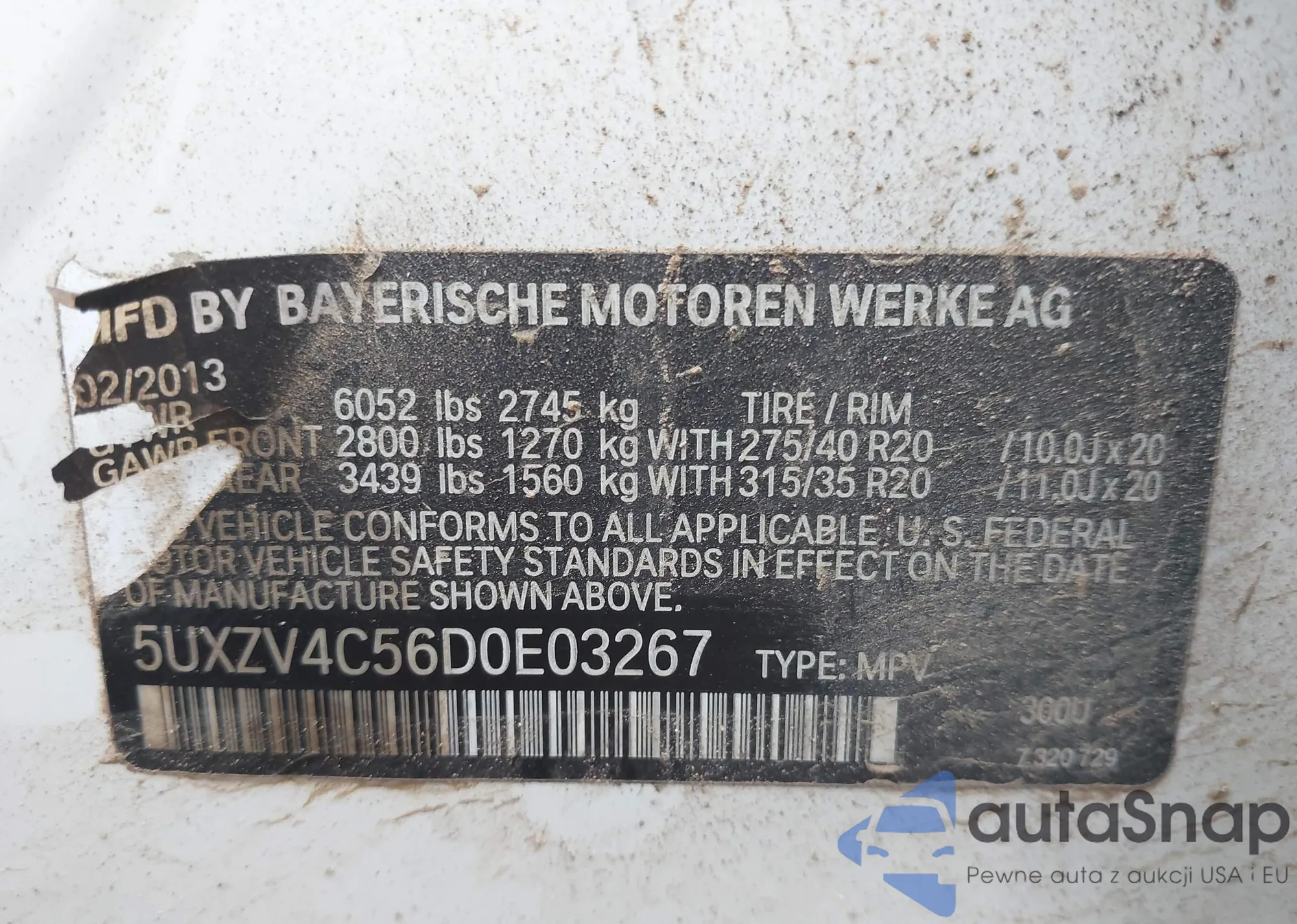• VIN 5UXZV4C56D0E03267