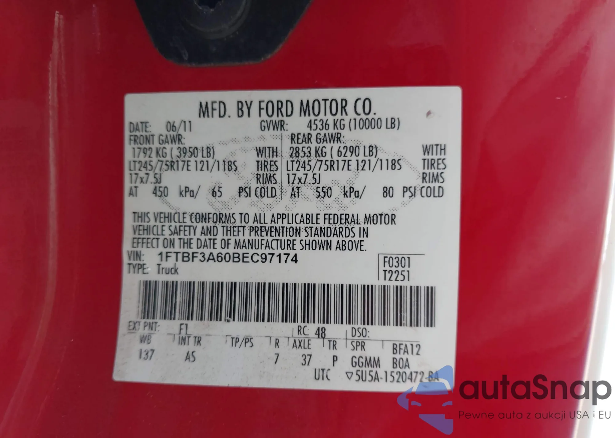 • VIN 1FTBF3A60BEC97174