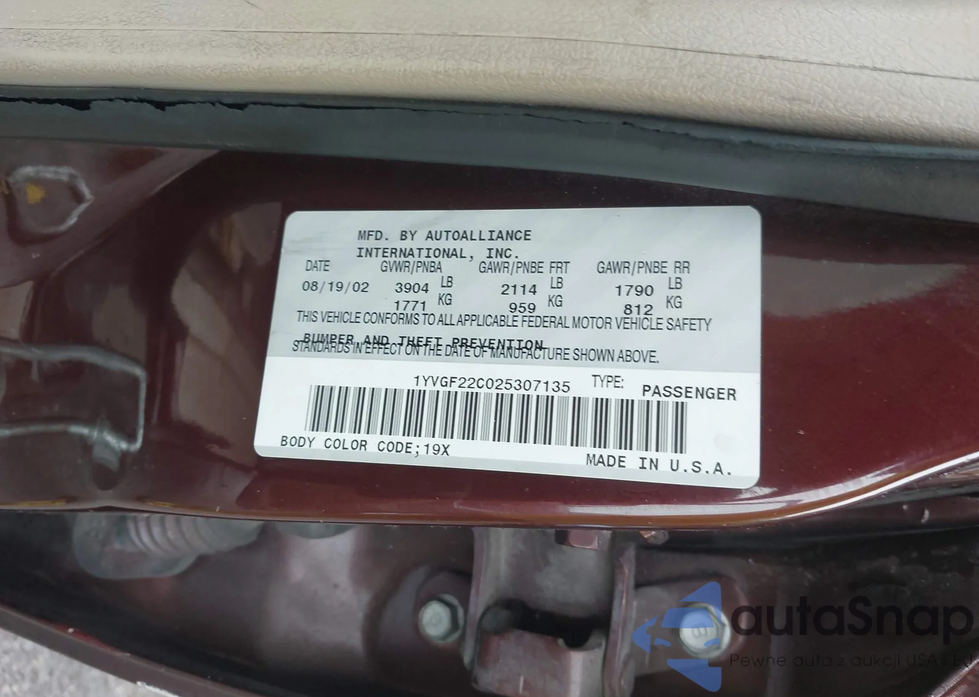 • VIN 1YVGF22C025307135