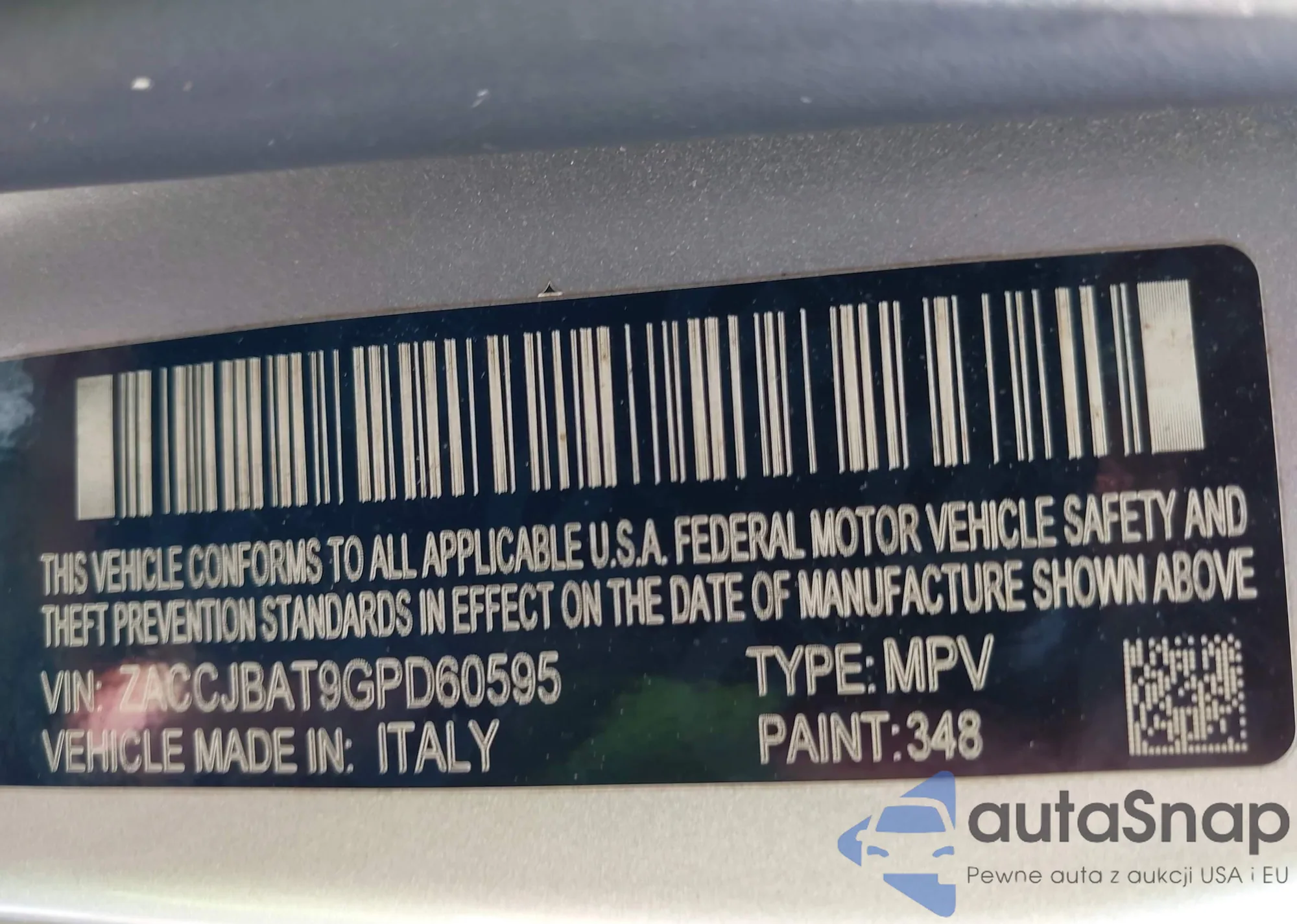 LOT: 43255415 VIN: ZACCJBAT9GPD60595