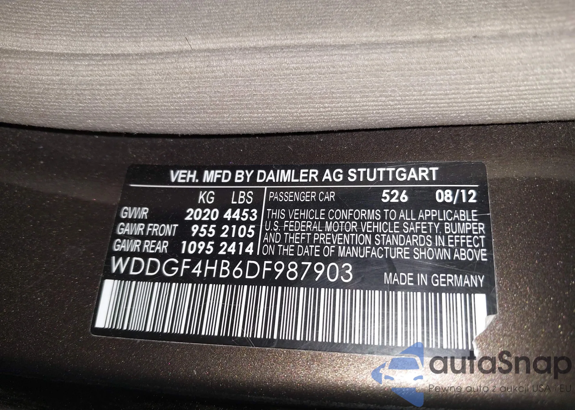 LOT: 43280467 VIN: WDDGF4HB6DF987903