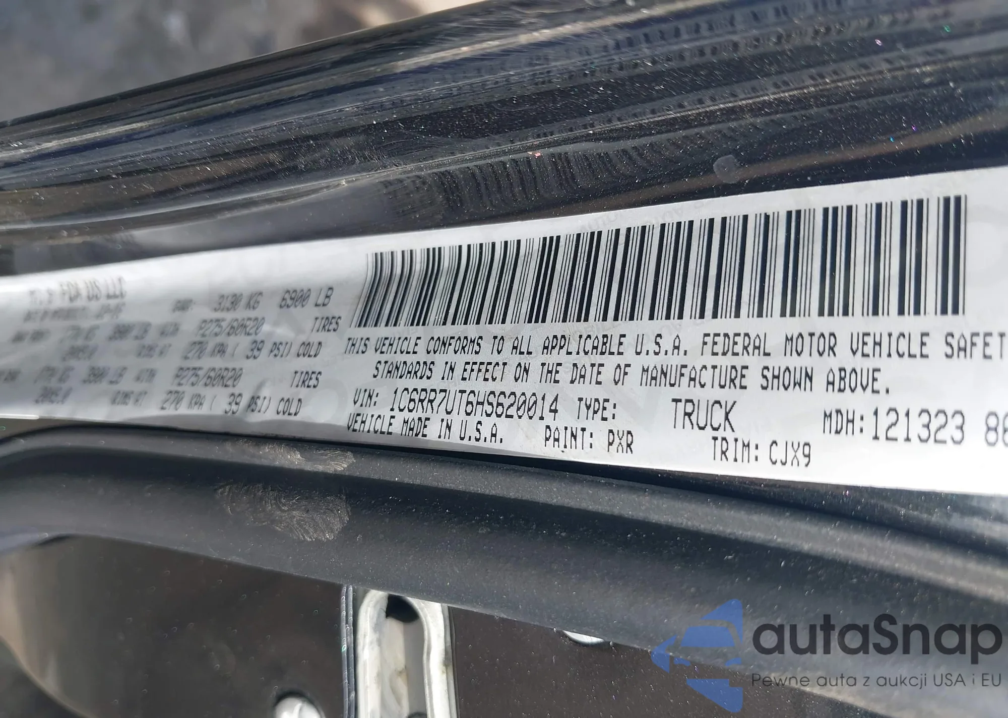 • VIN 1C6RR7UT6HS620014