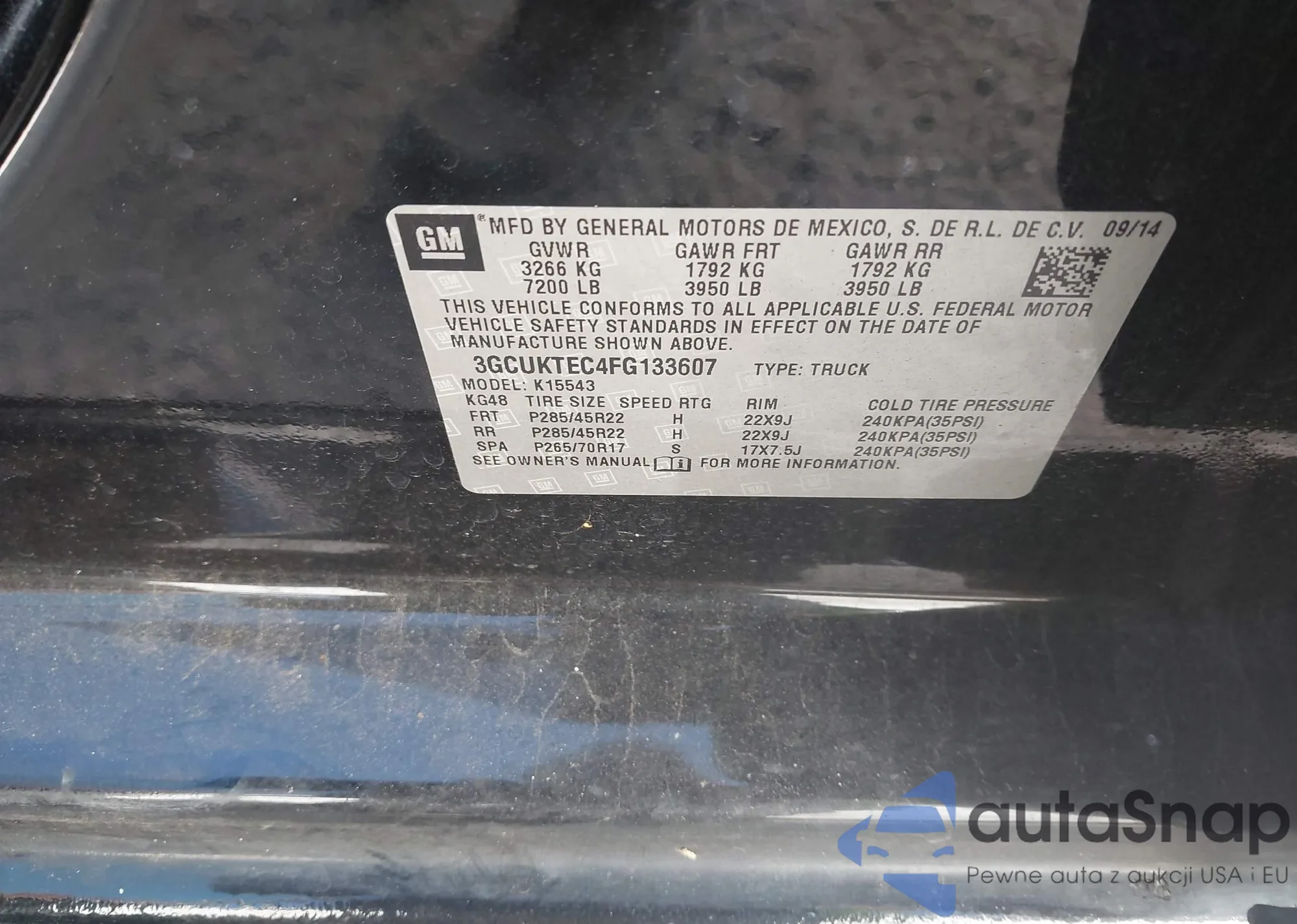 • VIN 3GCUKTEC4FG133607