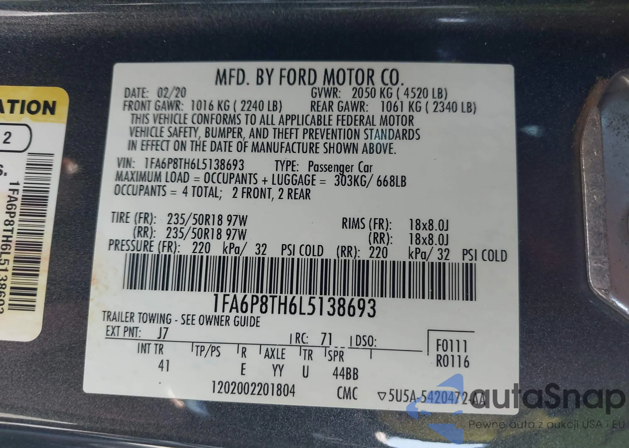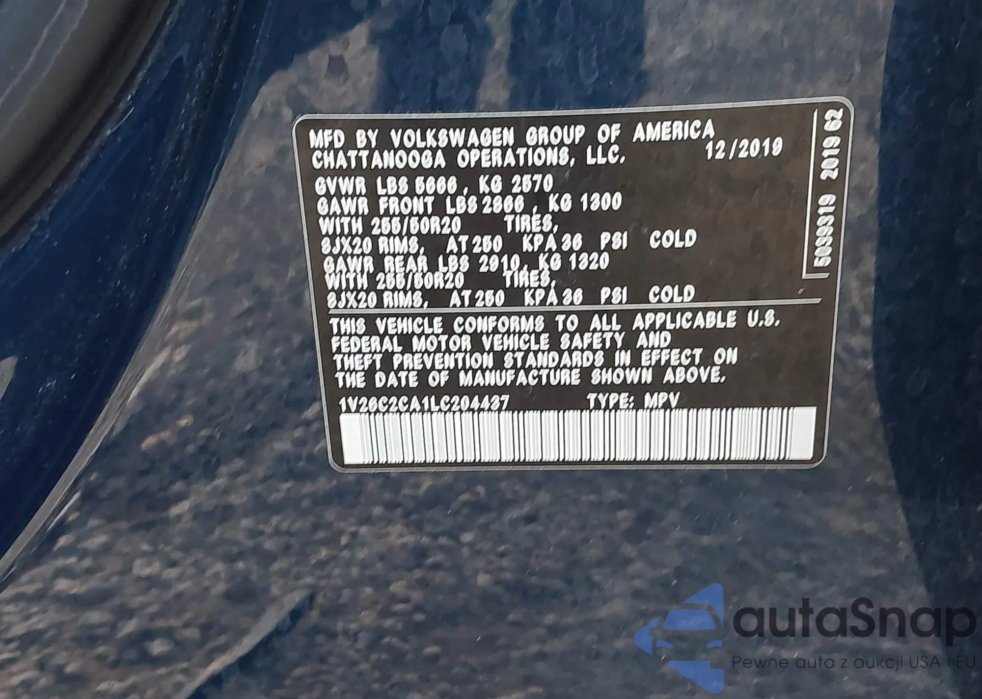 • VIN 1V26C2CA1LC204437