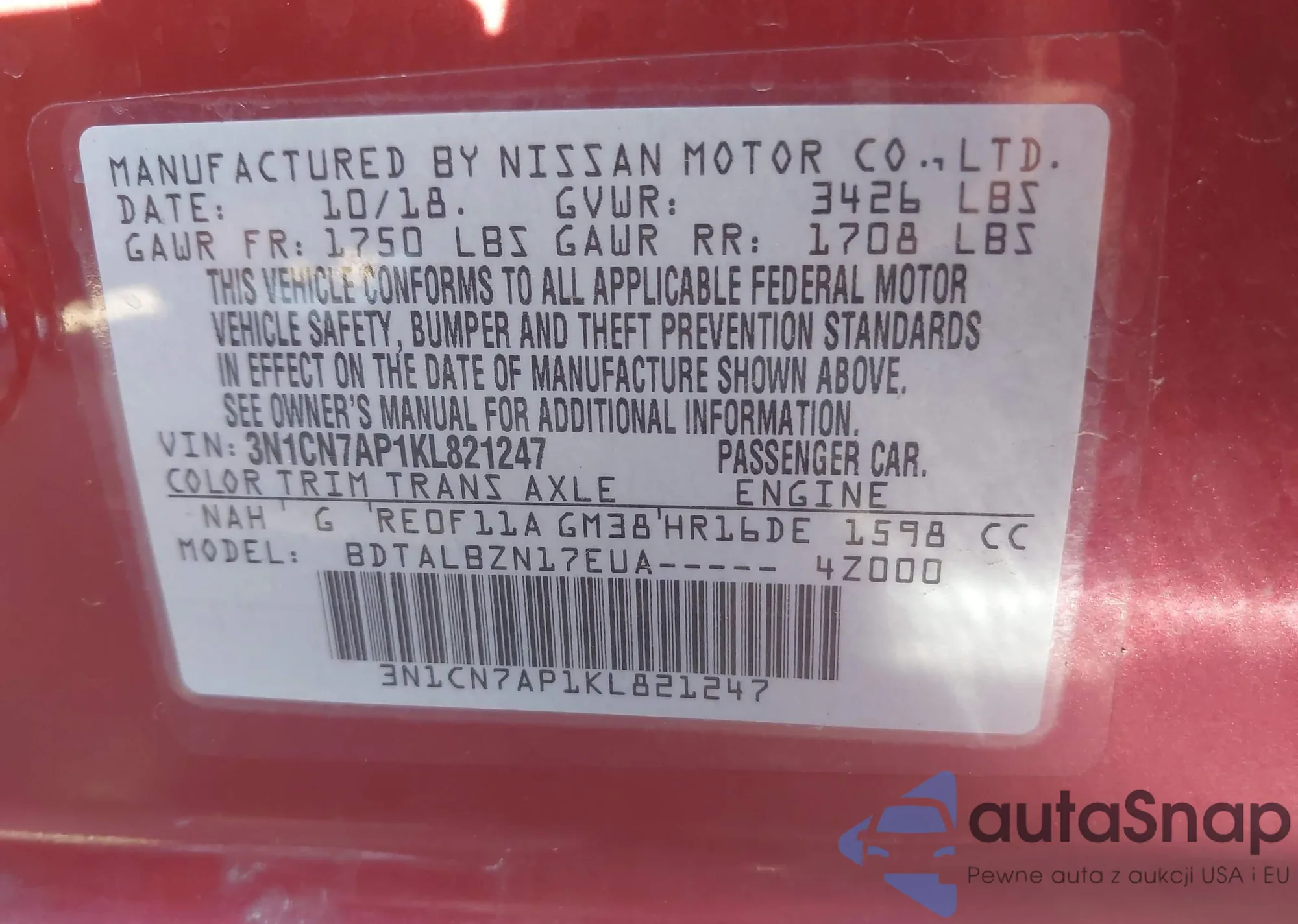 • VIN 3N1AB8CV1LY306111