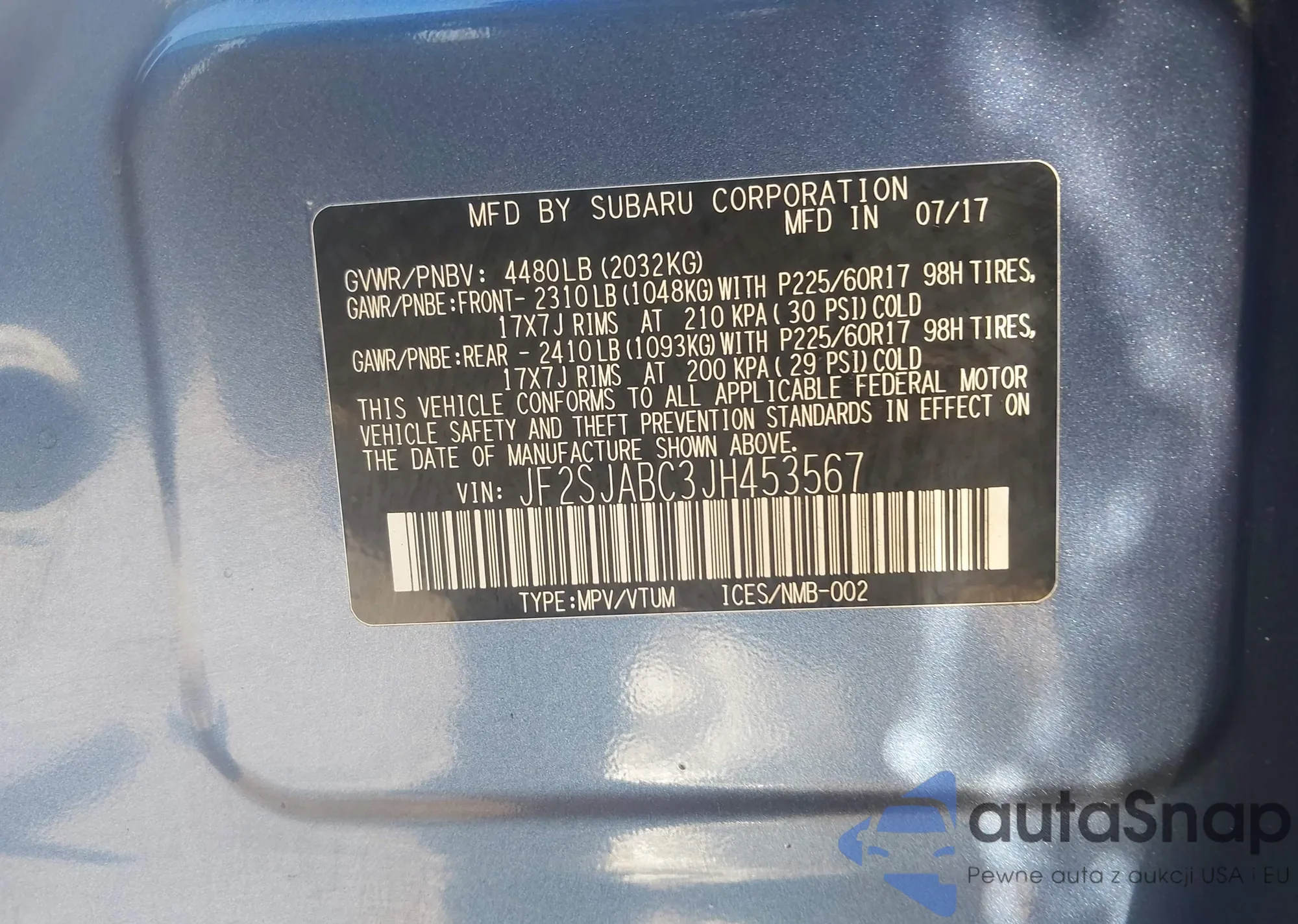 • VIN JF2SJABC3JH453567