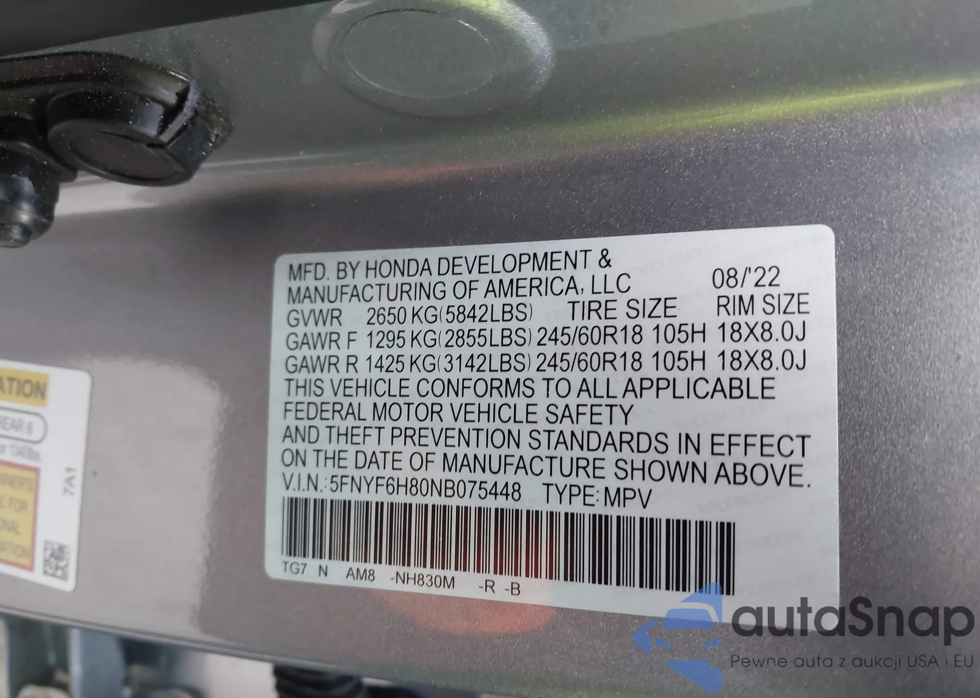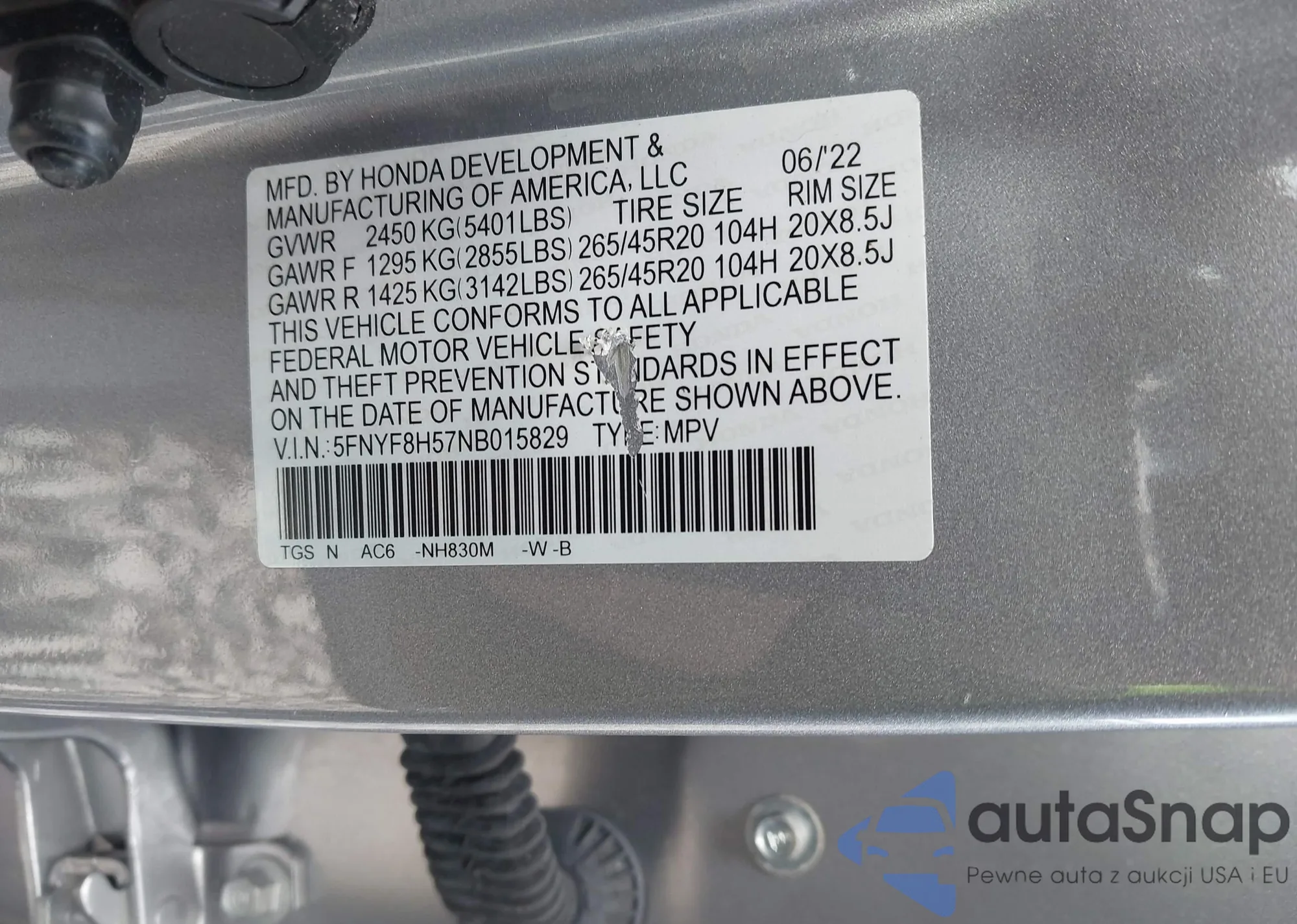 LOT: 43557045 VIN: 2HGFE2F55SH502545