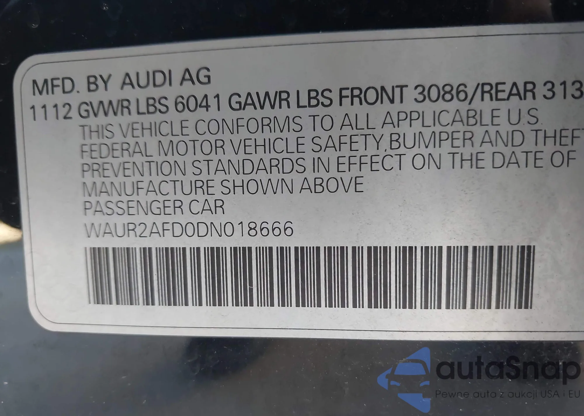 • VIN WAUR2AFD0DN018666