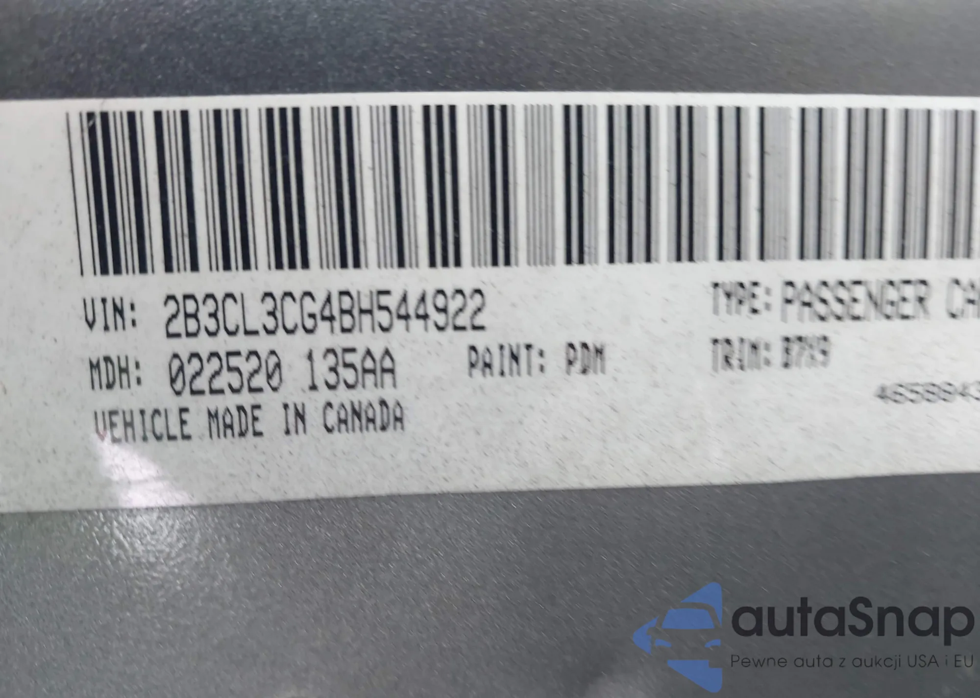 • VIN 2B3CL3CG4BH544922