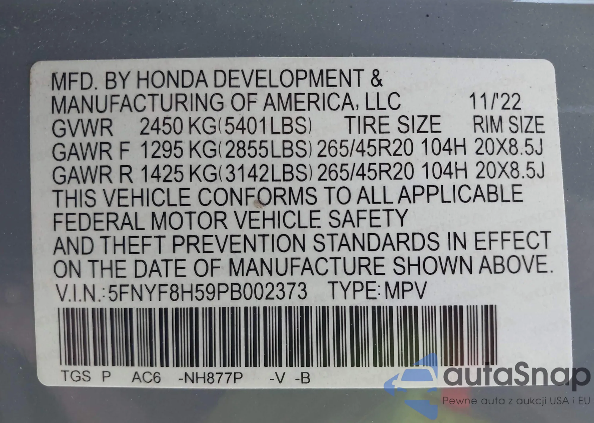 • VIN 5N1AR1NB2BC619240