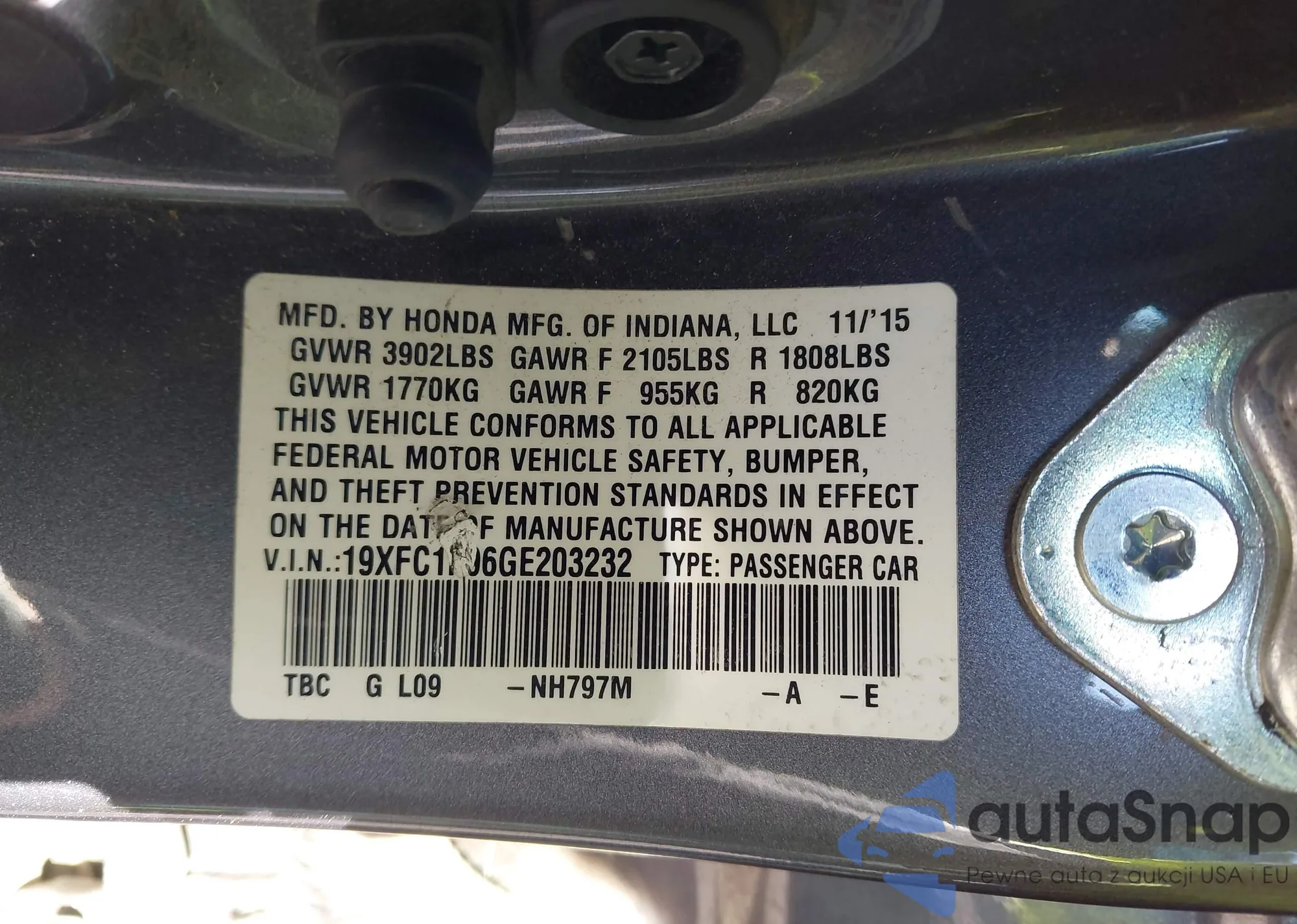 • VIN 19XFC1F96GE203232