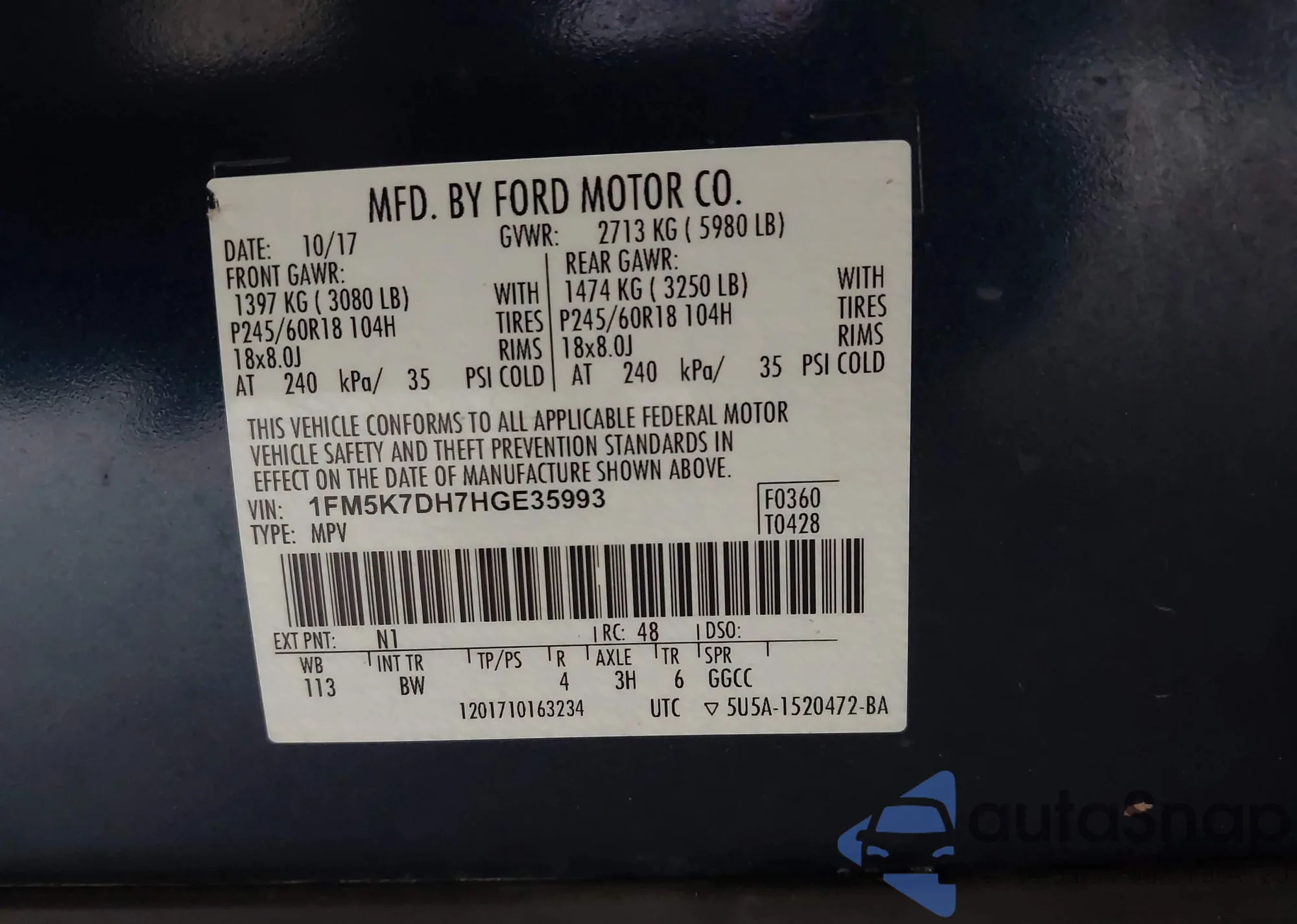 • VIN 1FM5K7DH7HGE35993