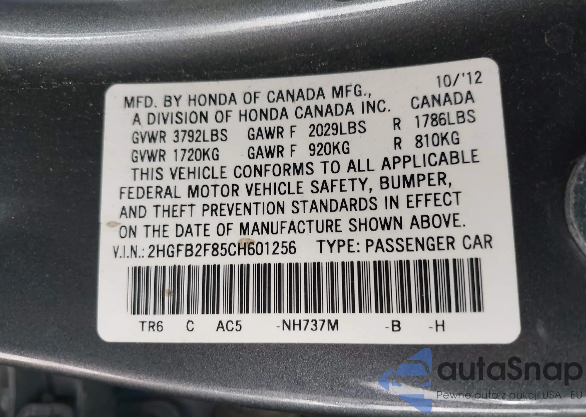 • VIN 2HKRS4H49RH450522