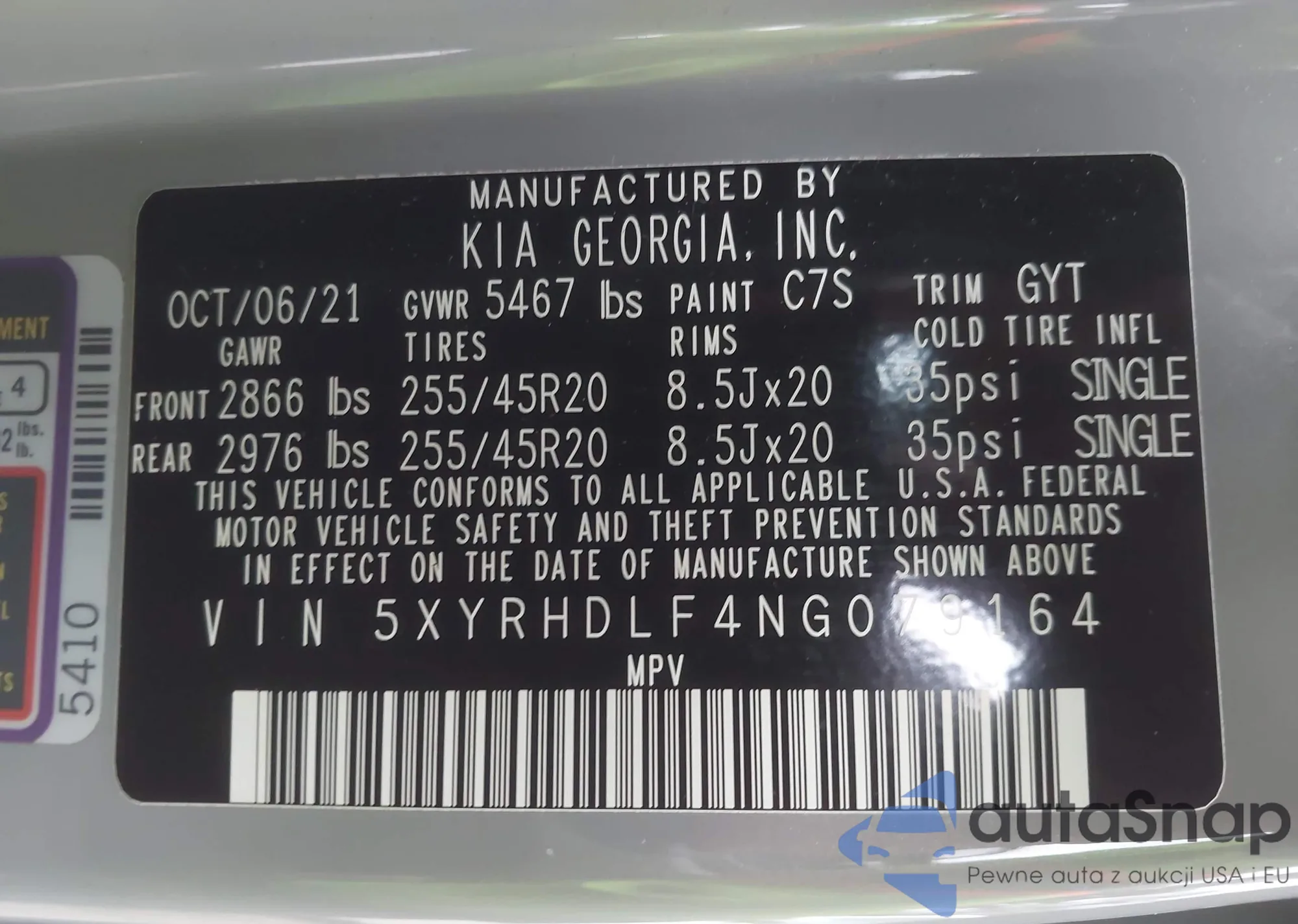 LOT: 43470408 VIN: 5XYRHDLF4NG079164
