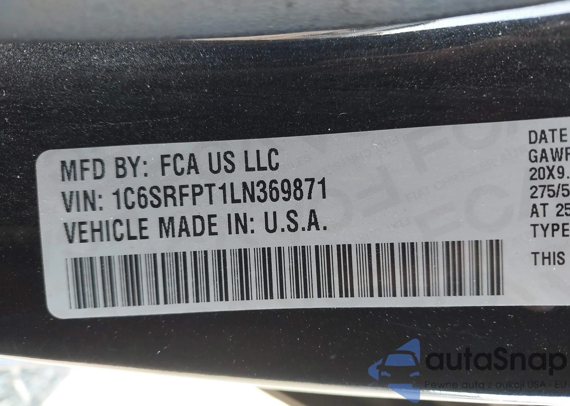 LOT: 43422308 VIN: 1C6SRFPT1LN369871