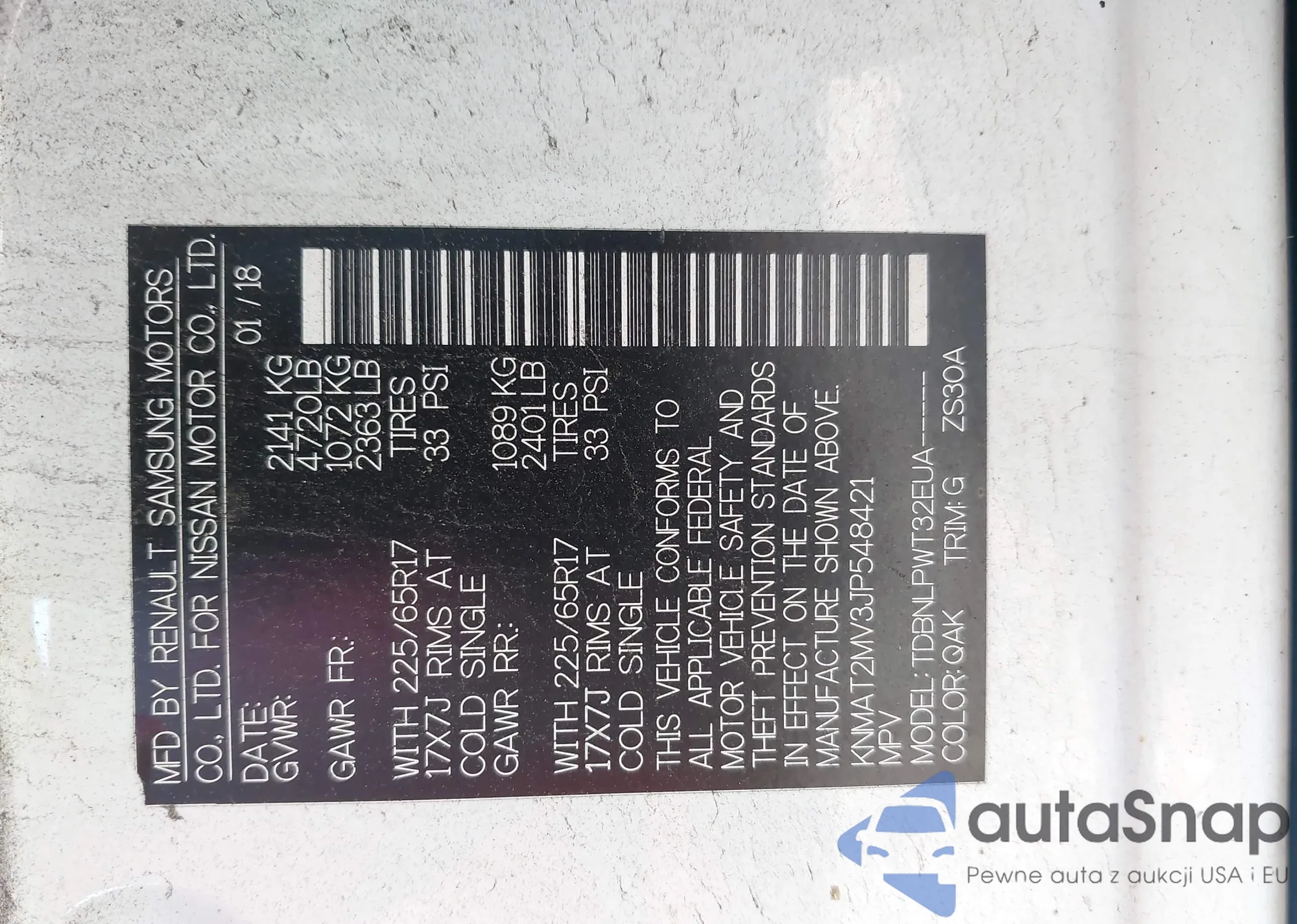 LOT: 43115603 VIN: WAUABAF48MA035137