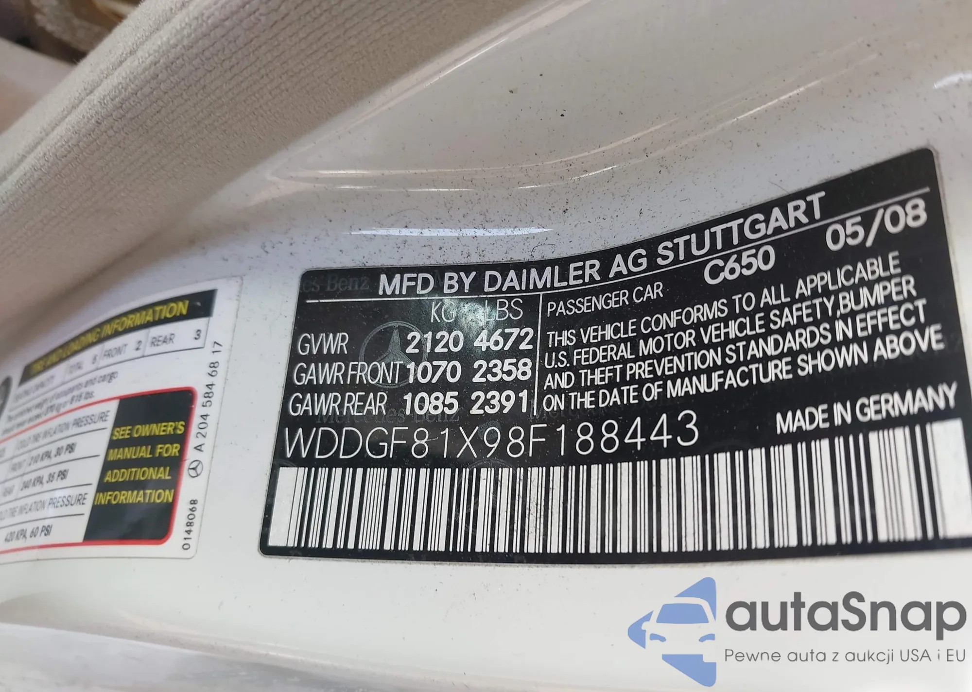 LOT: 43134866 VIN: WDDGF81X98F188443
