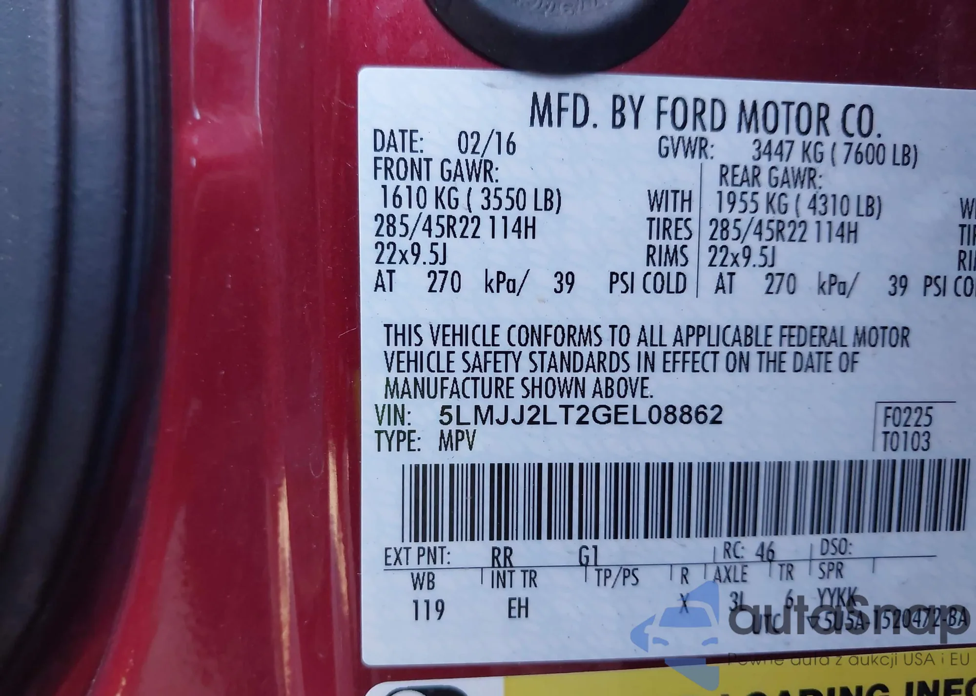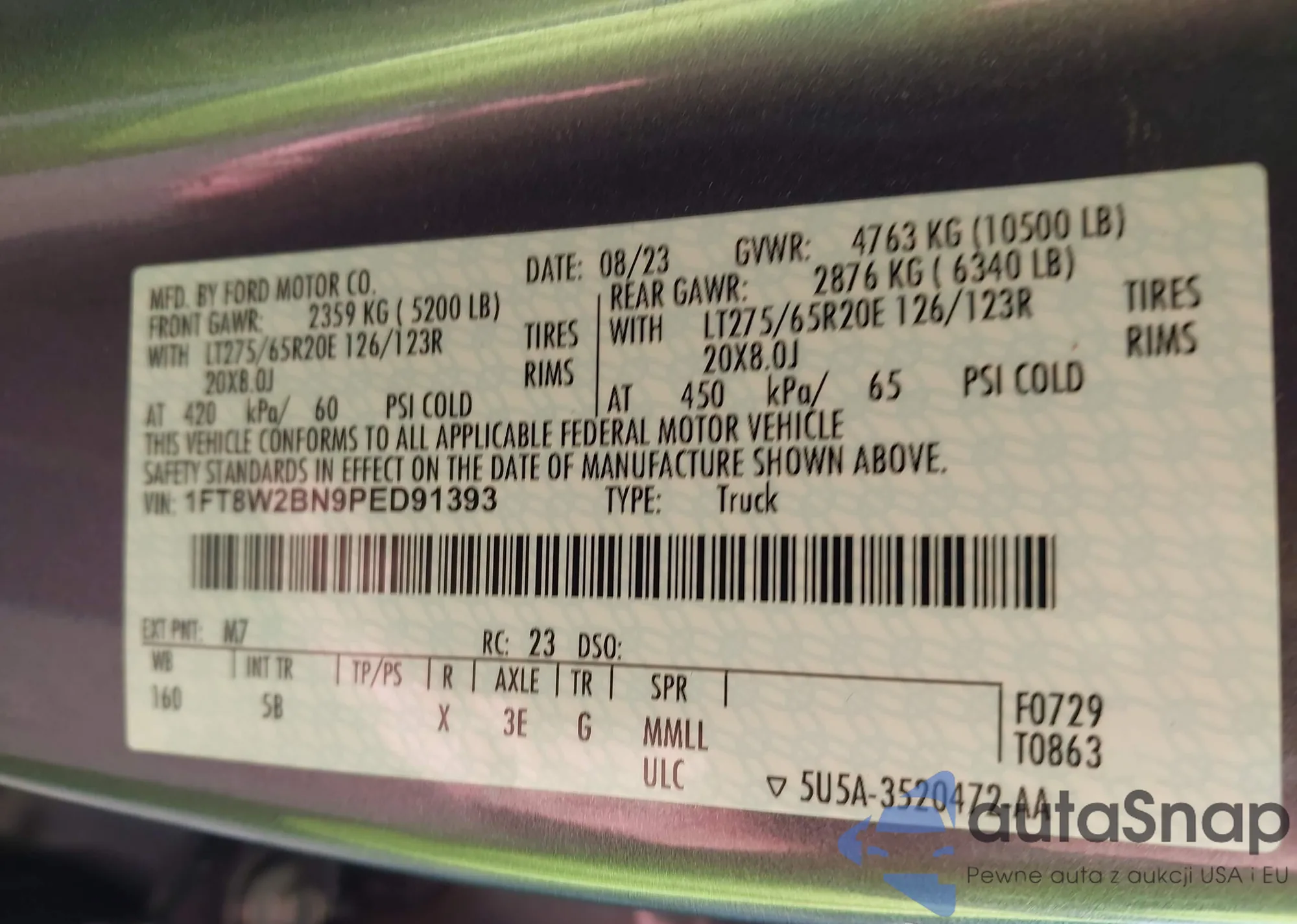 LOT: 43372245 VIN: 1FT8W2BN9PED91393