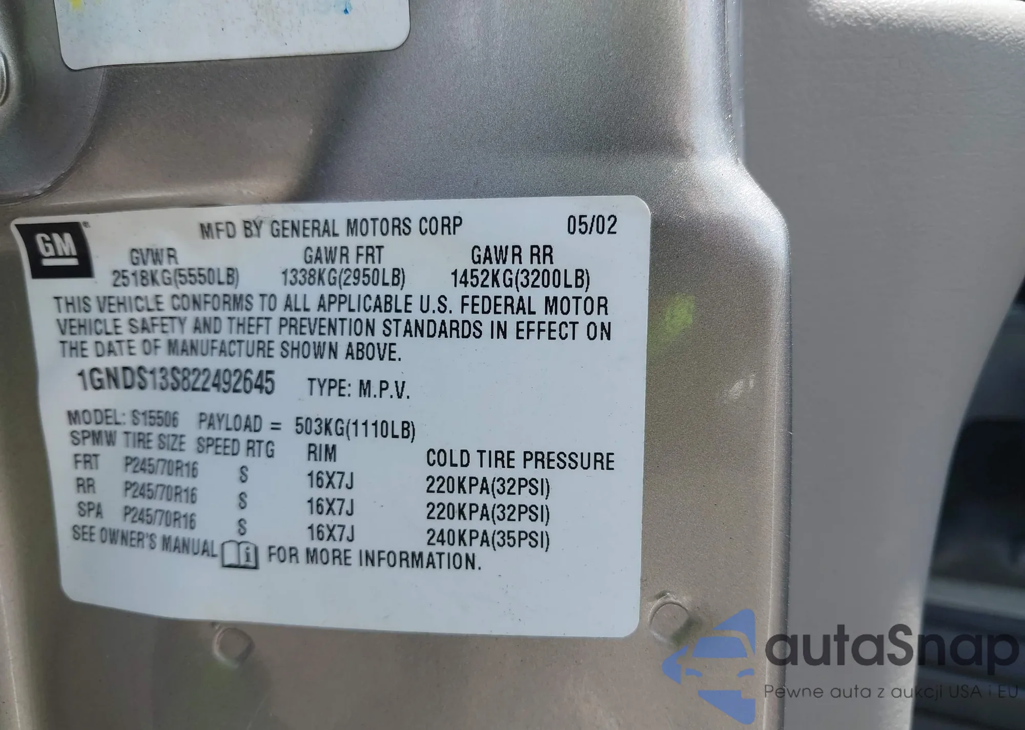 LOT: 42720768 VIN: 1GNDS13S822492645