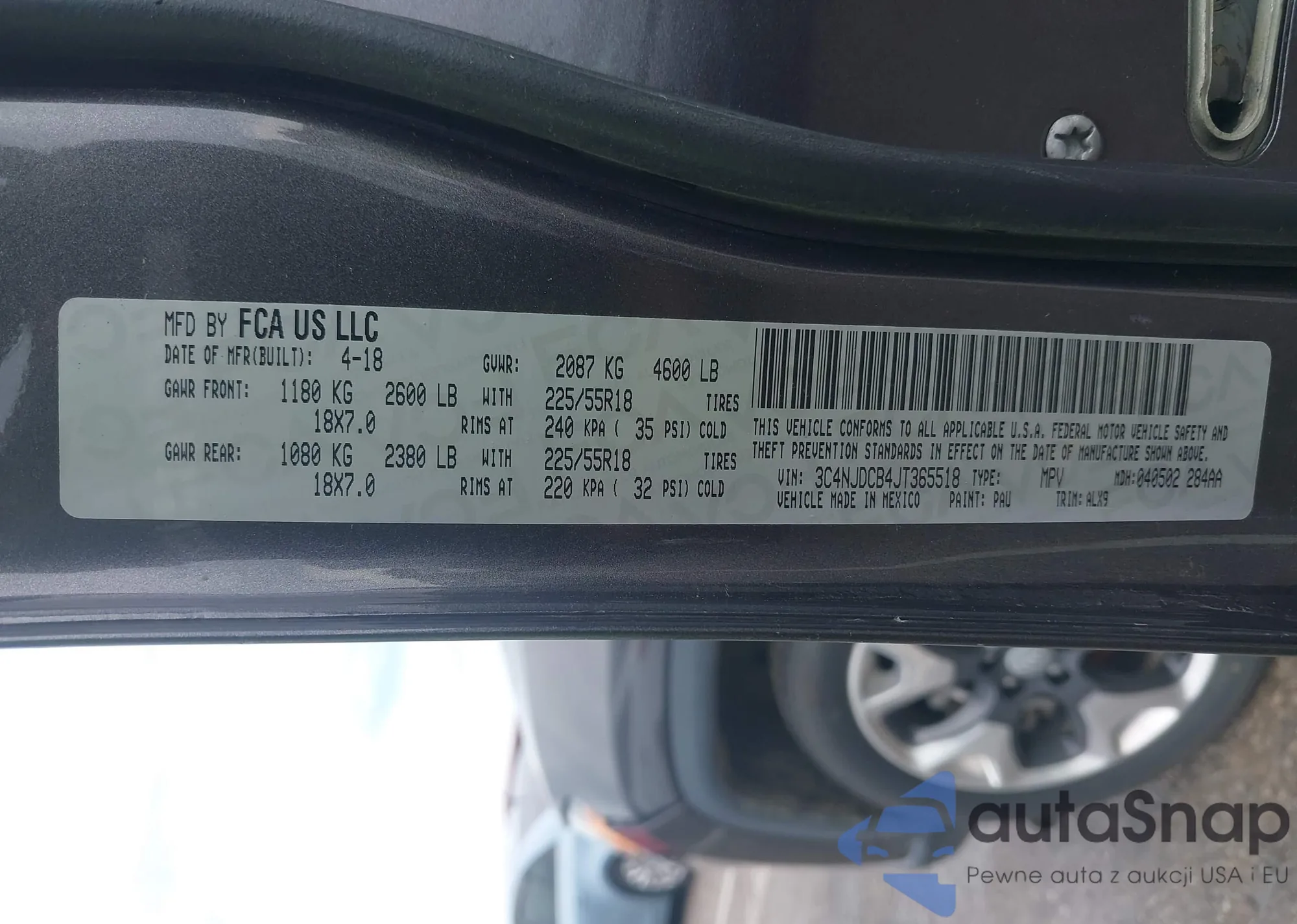 • VIN 3C4NJDCB4JT365518