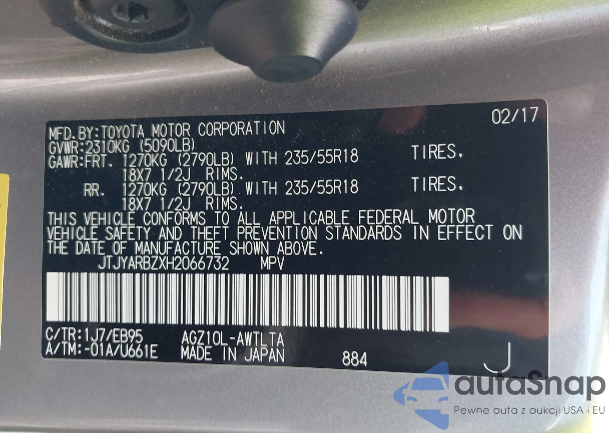 • VIN JTJYARBZXH2066732