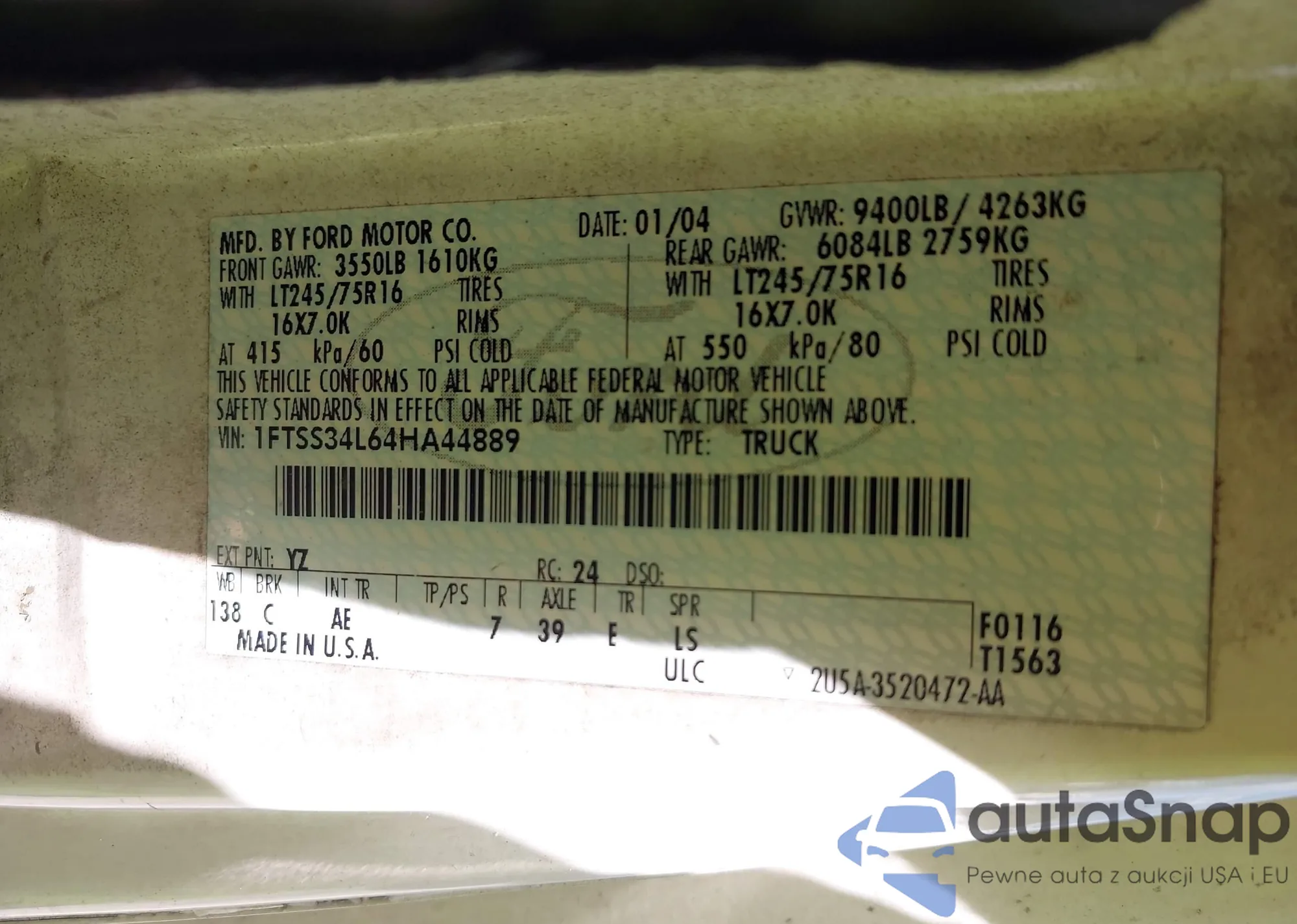 LOT: 43348533 VIN: 1FTSS34L64HA44889