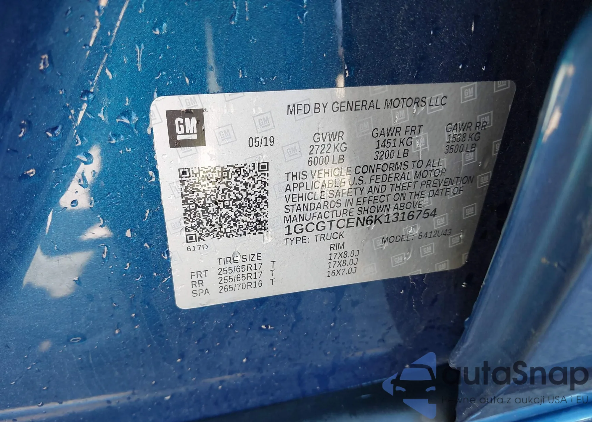 LOT: 43380889 VIN: 1GCGTCEN6K1316754