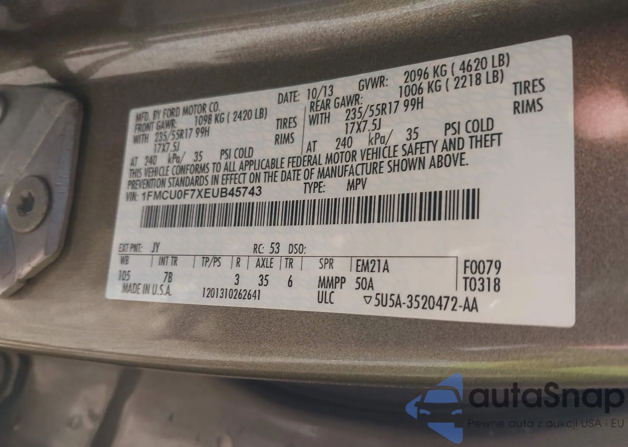LOT: 43477933 VIN: 2FMPK4K82JBB71783