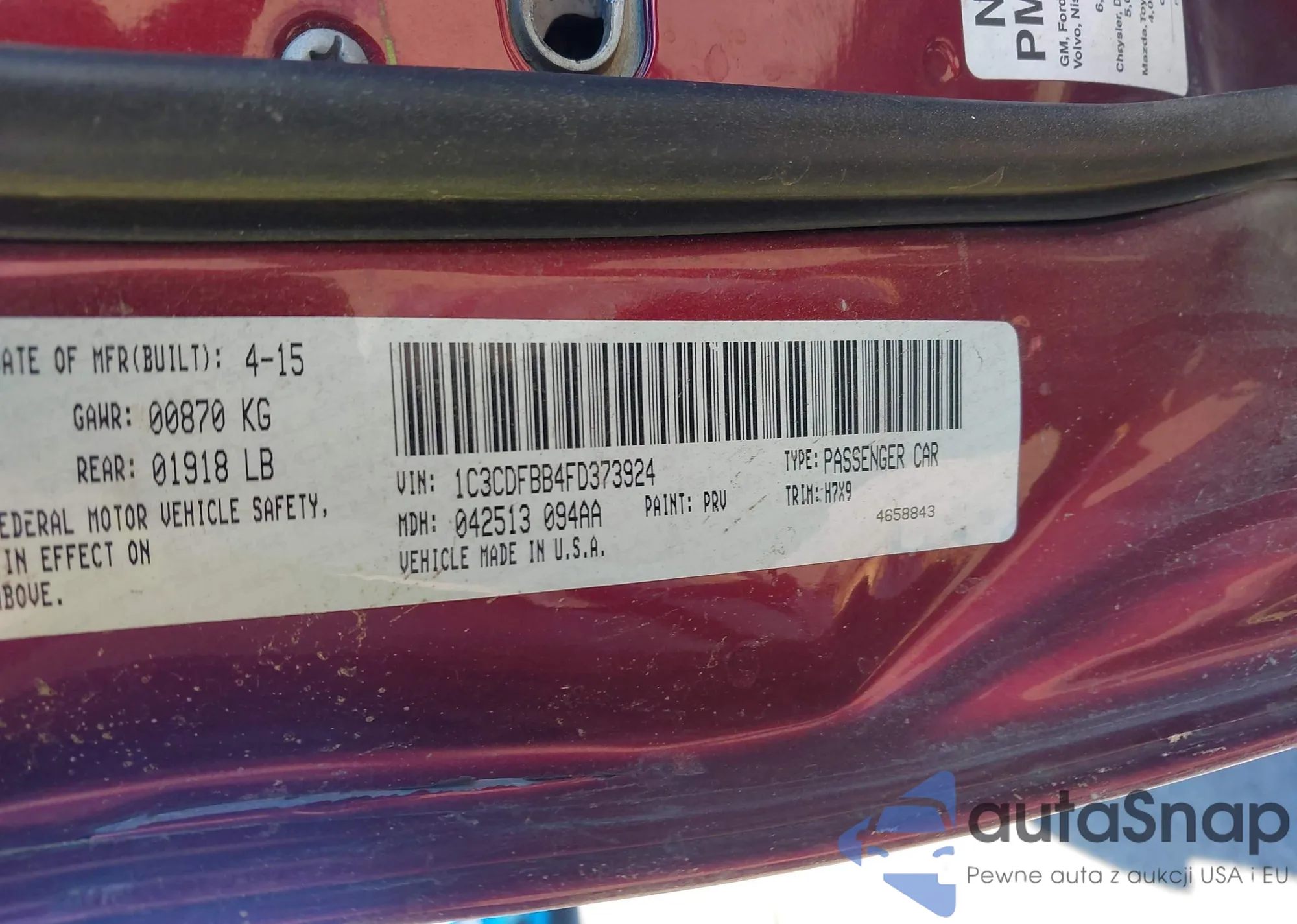 • VIN 1C3CDFBB4FD373924