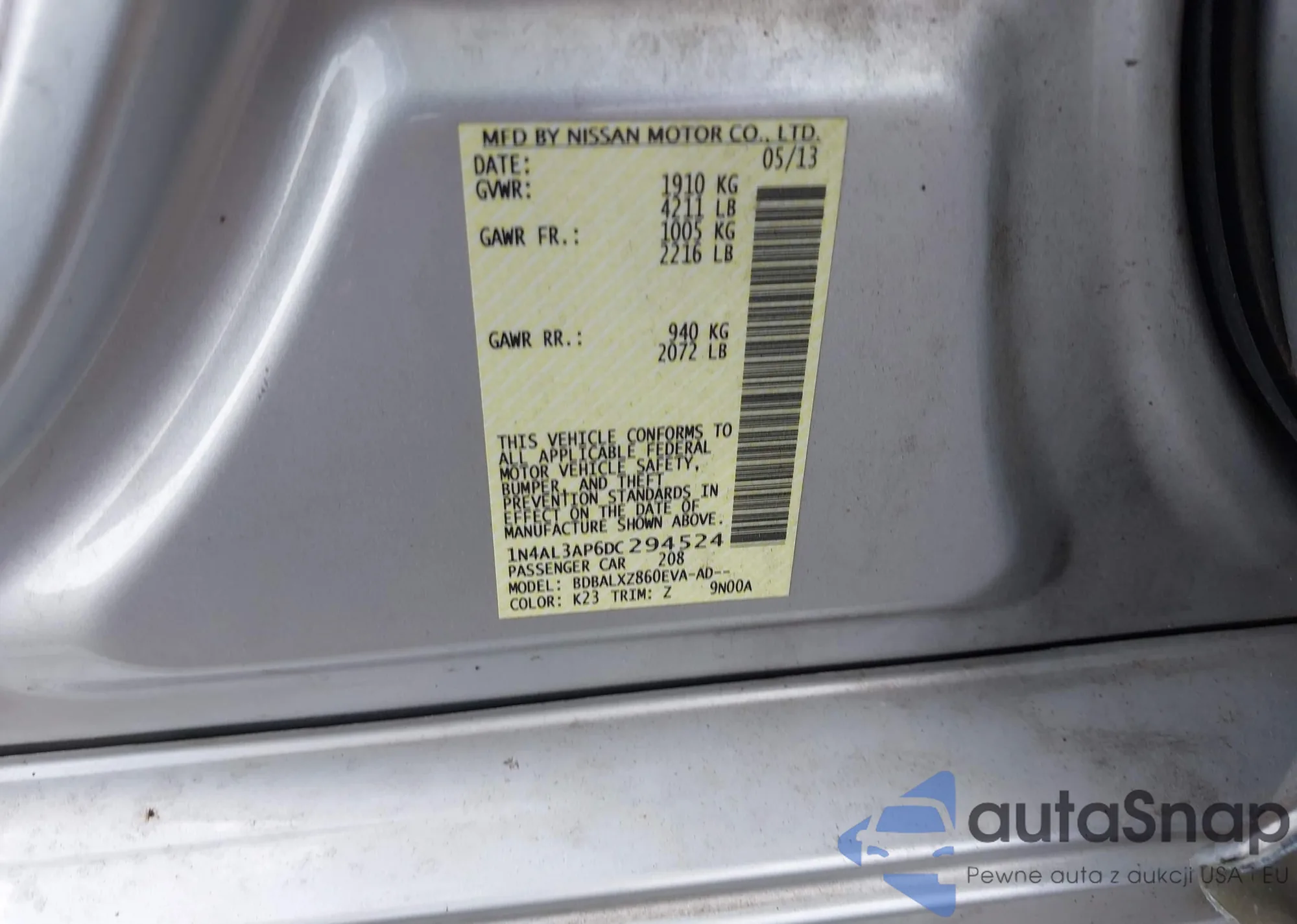LOT: 42801049 VIN: 1N4AL3AP6DC294524