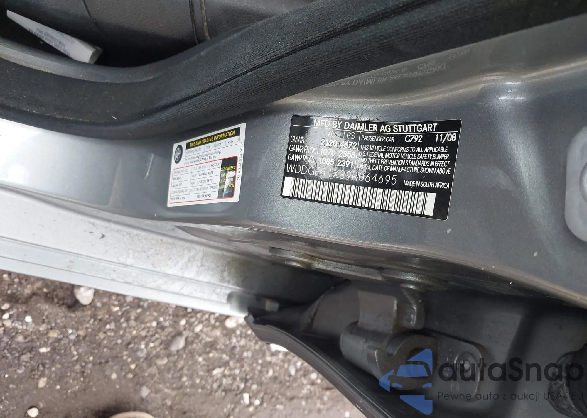 • VIN WDDGF81X89R064695